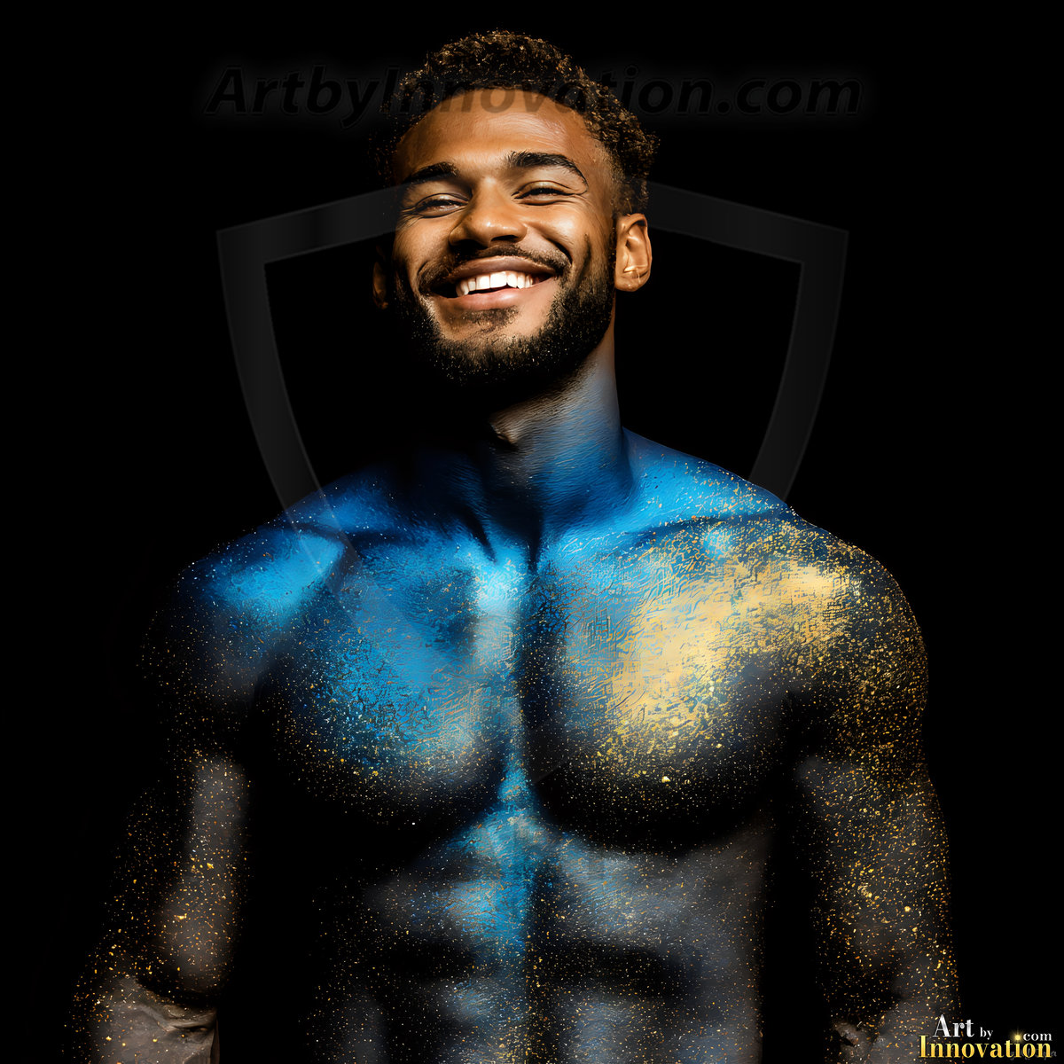 Beauty meets color in this stunning AI-generated abstract art collection. Handsome, shirtless men are enveloped from behind by vibrant, swirling translucent mists of color — inspired by the full spectrum of the rainbow, and the joyful palette of Pride. Each image combines photorealistic skin texture with surreal abstract color dynamics, creating a visual experience that is both deeply human and otherworldly. Created using Flux.1, ComfyUI, and Stable Diffusion by © Jeff Dupler | Art by Innovation | https://www.artbyinnovation.com