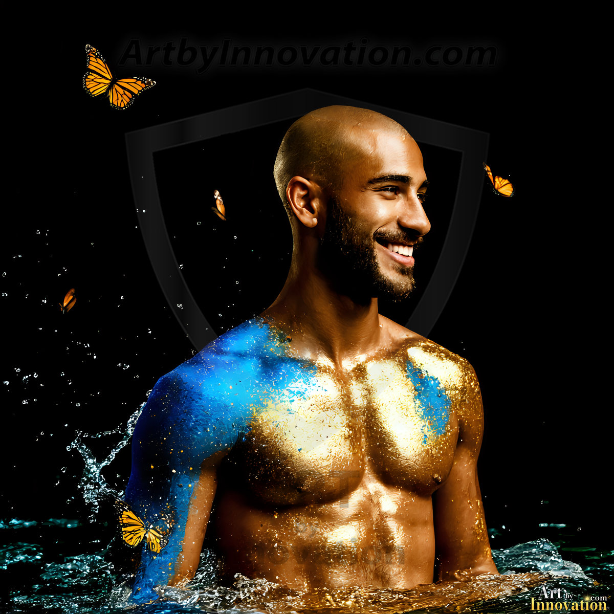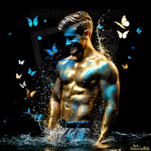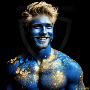 ByjeffThe Beautiful & Handsome Men Art Collection, is a collection of AI generated images of sexy, shirtless, glamorous, handsome guys. In these AI-generated male art HD photos, include guys of all ages just doing random activities, like hiking, camping, and dancing. Generated to be as realistic as possible, with todays technology.
