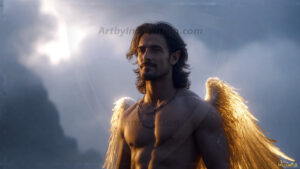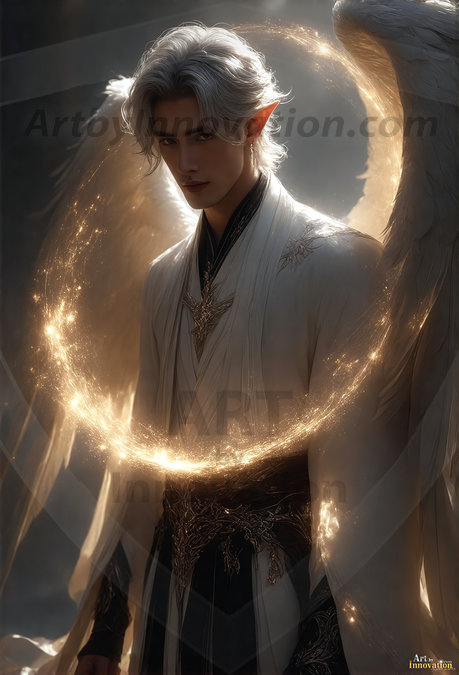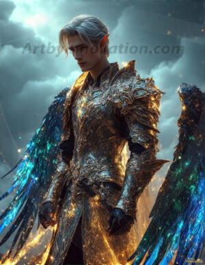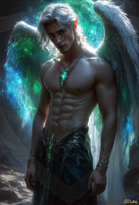 Heaven's Warriors descend. This AI-generated collection features stunningly handsome male angels with enormous, shimmering feathered wings — raw, untamed divine energy radiating from their chiseled forms. Set against heavenly skies, golden celestial cities, and ethereal cloudscapes, each angel exudes both breathtaking beauty and formidable divine power. Created using Flux.1 and ComfyUI by © Jeff Dupler | Art by Innovation | https://www.artbyinnovation.com