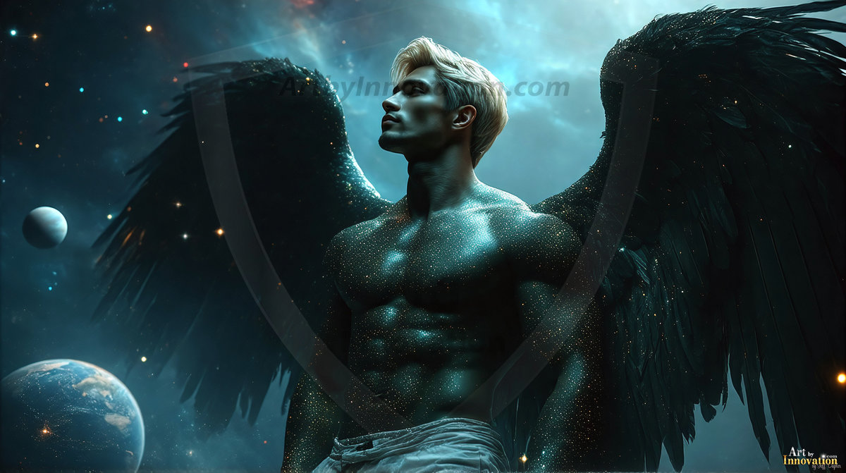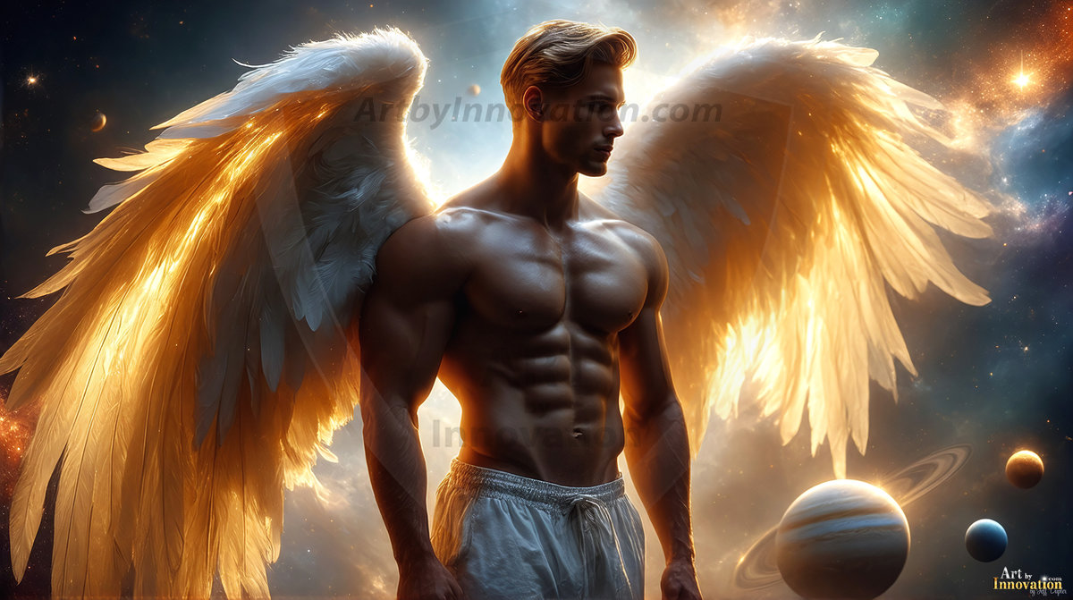 Heaven's Warriors descend. This AI-generated collection features stunningly handsome male angels with enormous, shimmering feathered wings — raw, untamed divine energy radiating from their chiseled forms. Set against heavenly skies, golden celestial cities, and ethereal cloudscapes, each angel exudes both breathtaking beauty and formidable divine power. Created using Flux.1 and ComfyUI by © Jeff Dupler | Art by Innovation | https://www.artbyinnovation.com