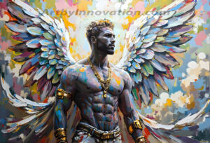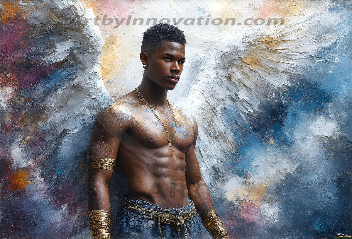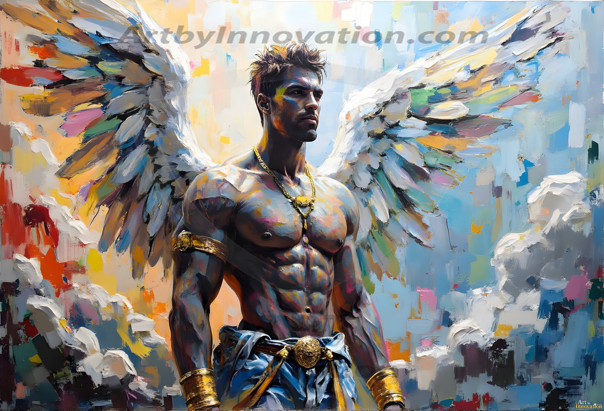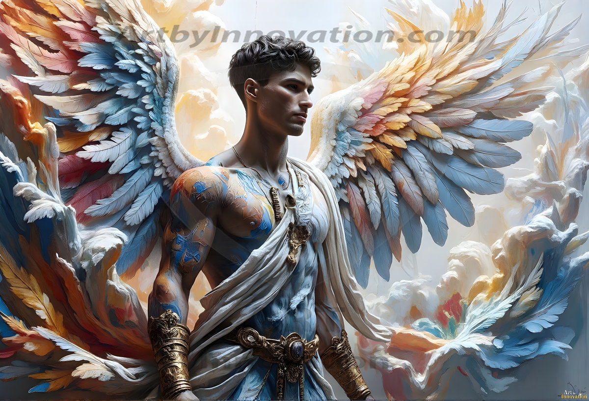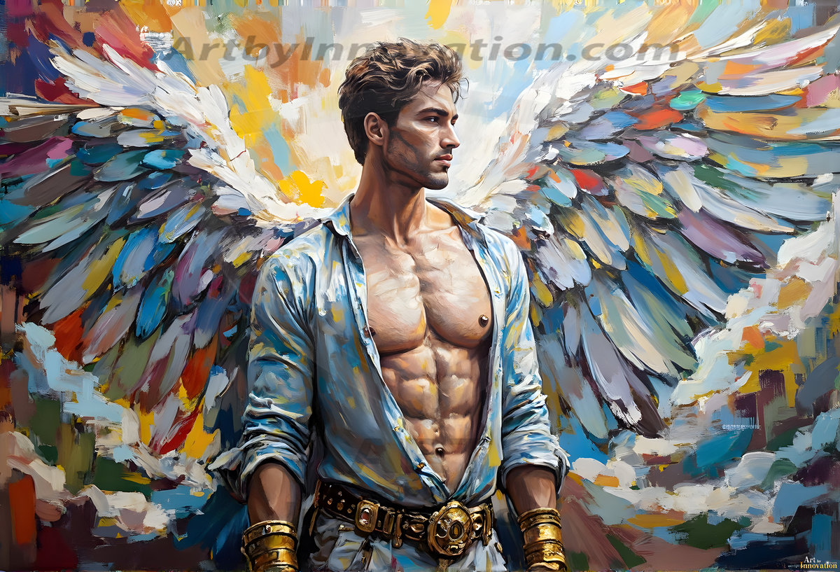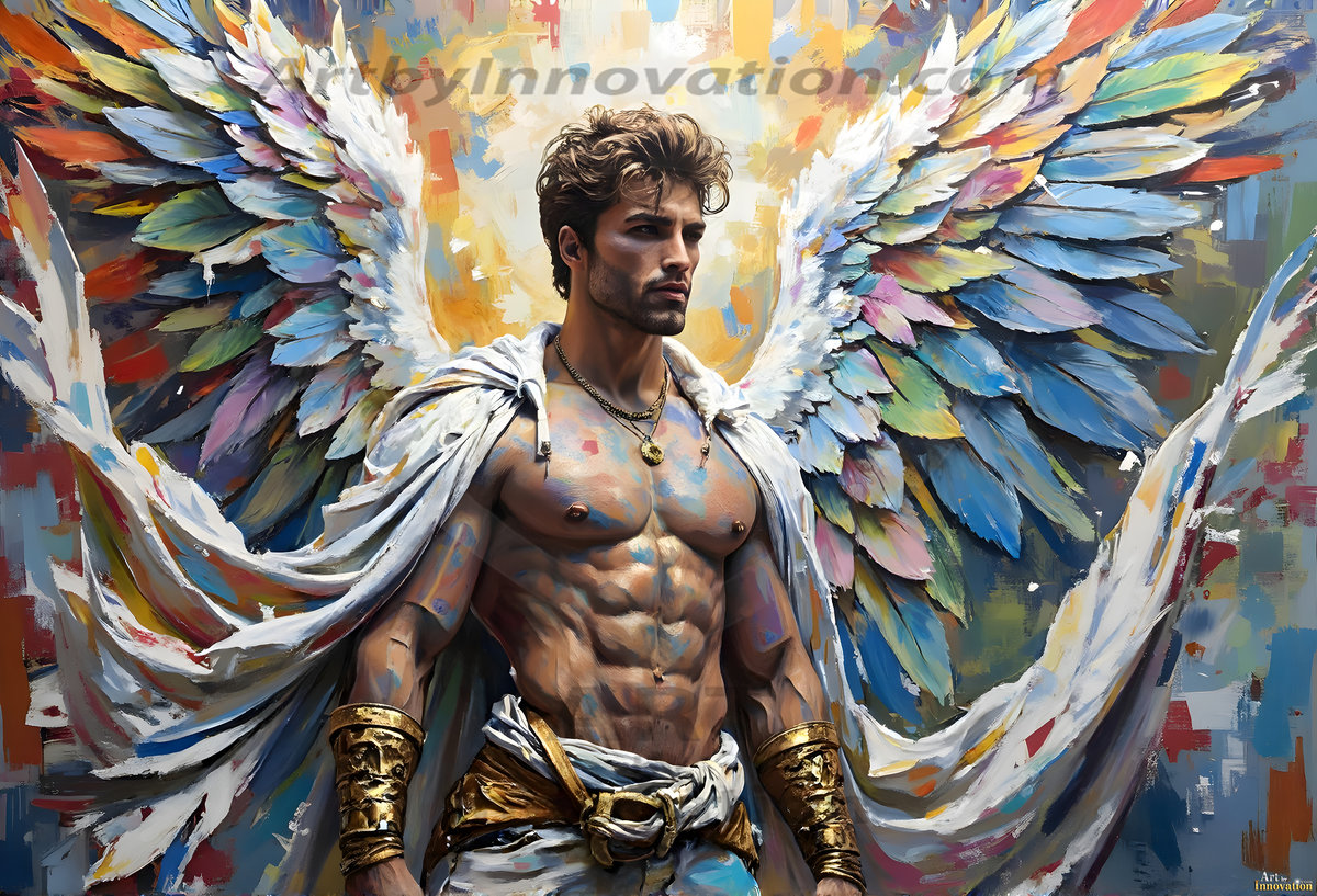Where beauty meets the divine — in full color. This AI-generated collection features beautiful, handsome male angels with enormous, vibrantly colored shimmering wings that reflect and radiate the full spectrum of color. Raw, untamed divine energy emanates from each figure, drawing viewers in with an electrifying and captivating presence. Created using Flux.1 and ComfyUI by © Jeff Dupler | Art by Innovation | https://www.artbyinnovation.com