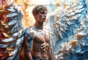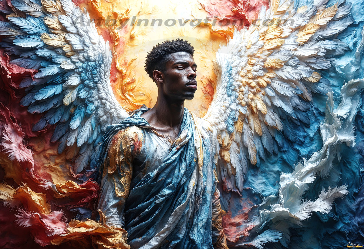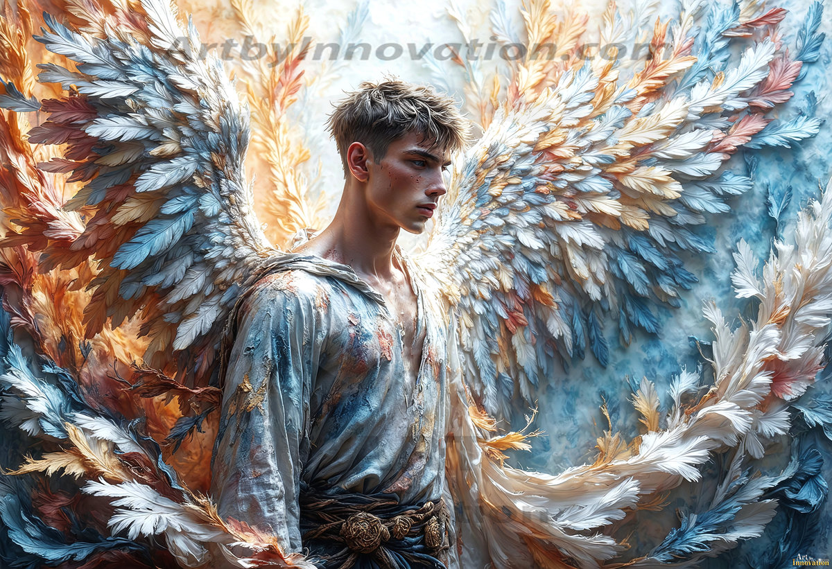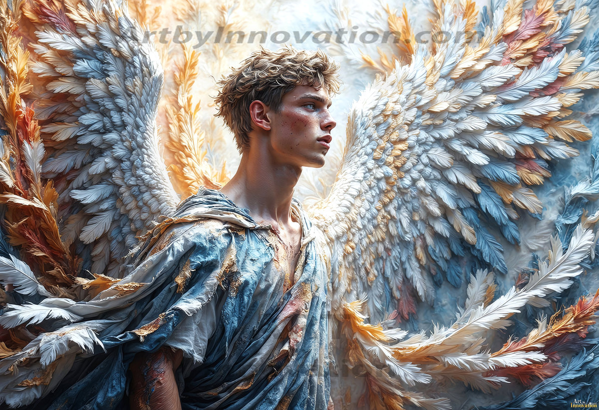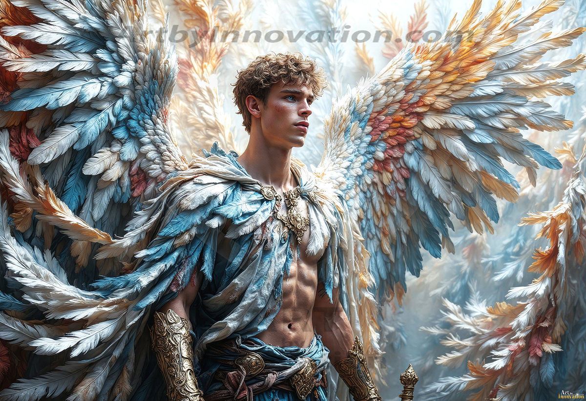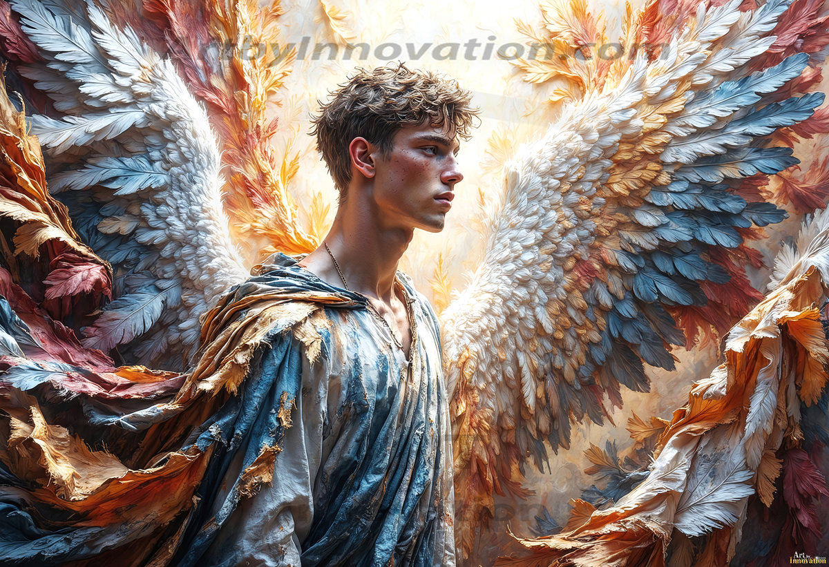 Where beauty meets the divine — in full color. This AI-generated collection features beautiful, handsome male angels with enormous, vibrantly colored shimmering wings that reflect and radiate the full spectrum of color. Raw, untamed divine energy emanates from each figure, drawing viewers in with an electrifying and captivating presence. Created using Flux.1 and ComfyUI by © Jeff Dupler | Art by Innovation | https://www.artbyinnovation.com