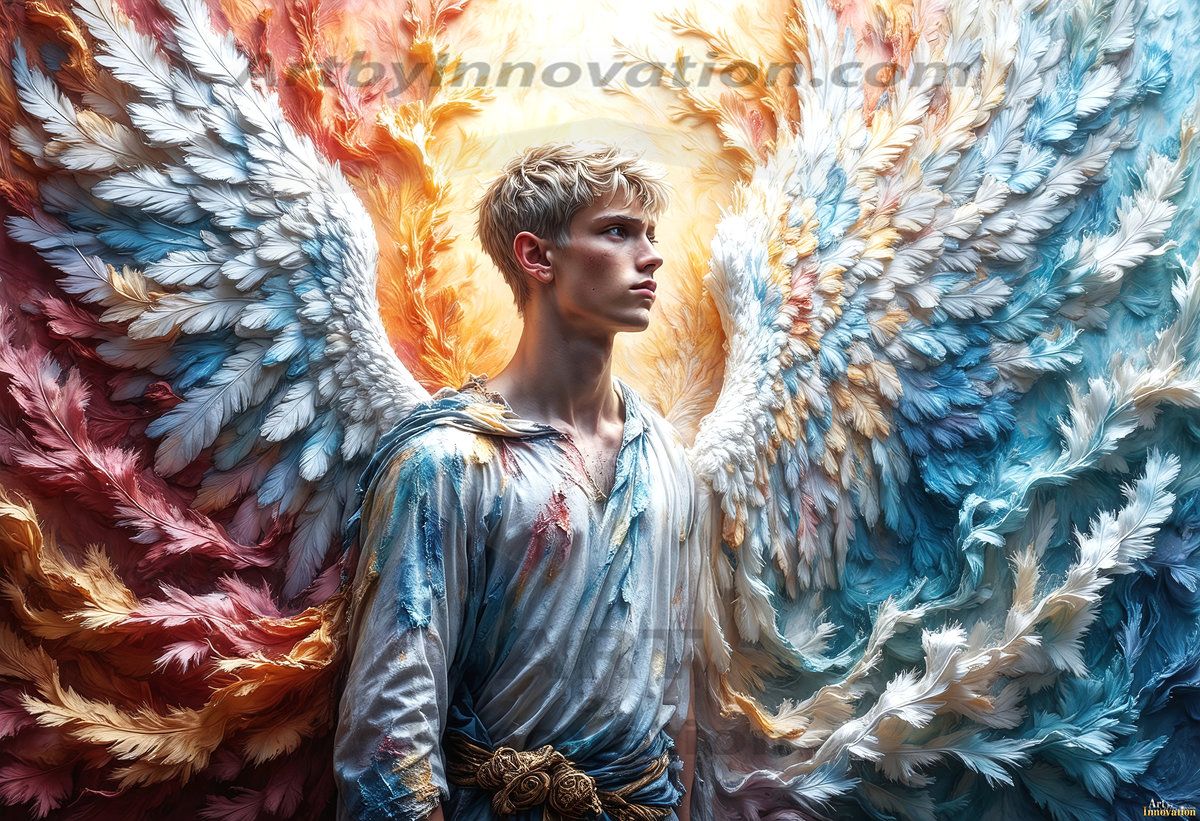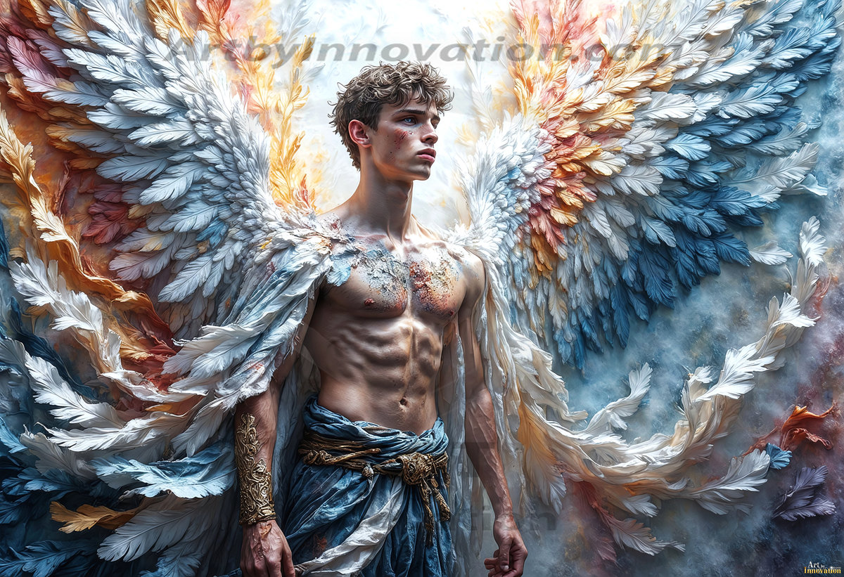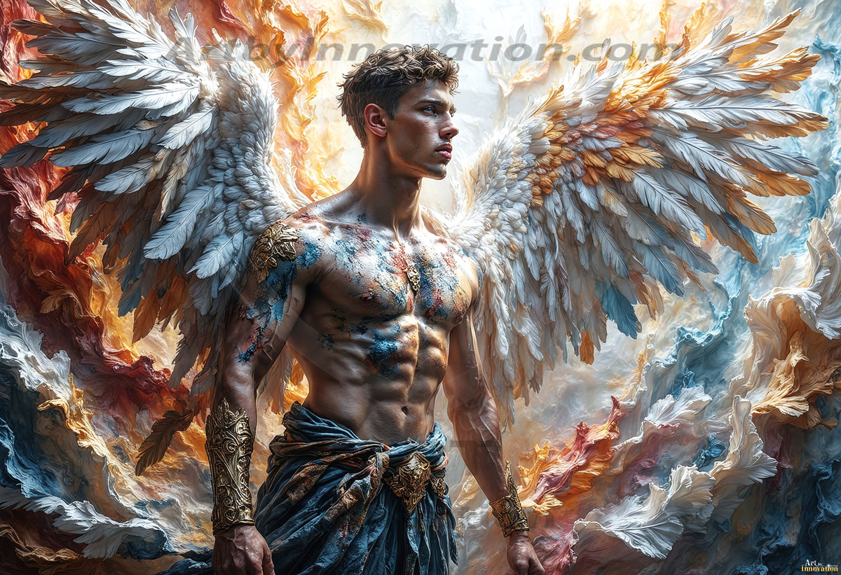 Where beauty meets the divine — in full color. This AI-generated collection features beautiful, handsome male angels with enormous, vibrantly colored shimmering wings that reflect and radiate the full spectrum of color. Raw, untamed divine energy emanates from each figure, drawing viewers in with an electrifying and captivating presence. Created using Flux.1 and ComfyUI by © Jeff Dupler | Art by Innovation | https://www.artbyinnovation.com