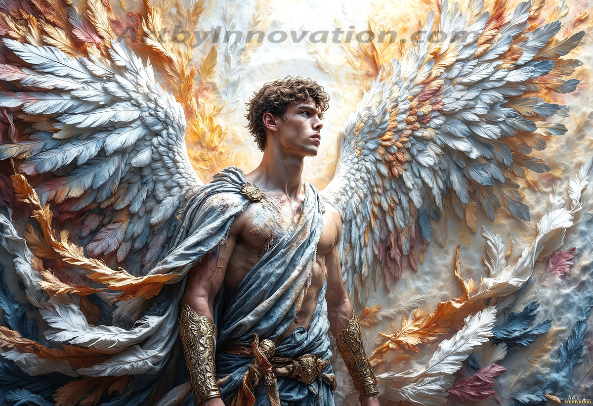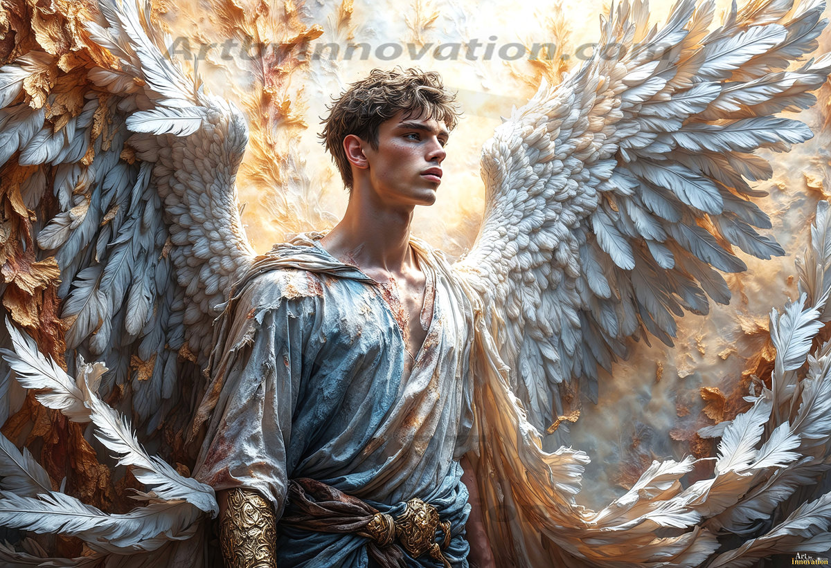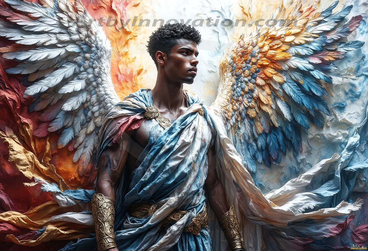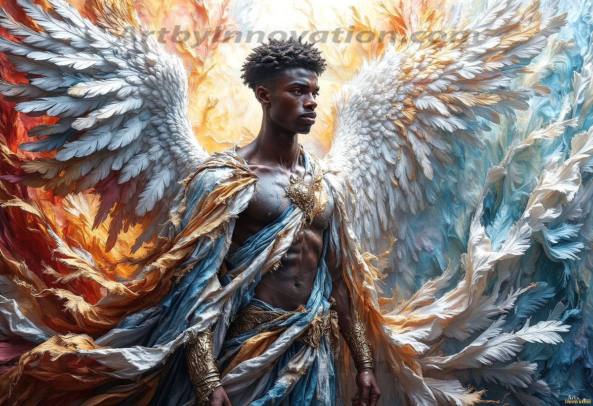Where beauty meets the divine — in full color. This AI-generated collection features beautiful, handsome male angels with enormous, vibrantly colored shimmering wings that reflect and radiate the full spectrum of color. Raw, untamed divine energy emanates from each figure, drawing viewers in with an electrifying and captivating presence. Created using Flux.1 and ComfyUI by © Jeff Dupler | Art by Innovation | https://www.artbyinnovation.com