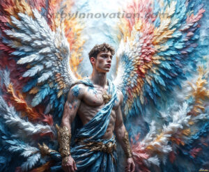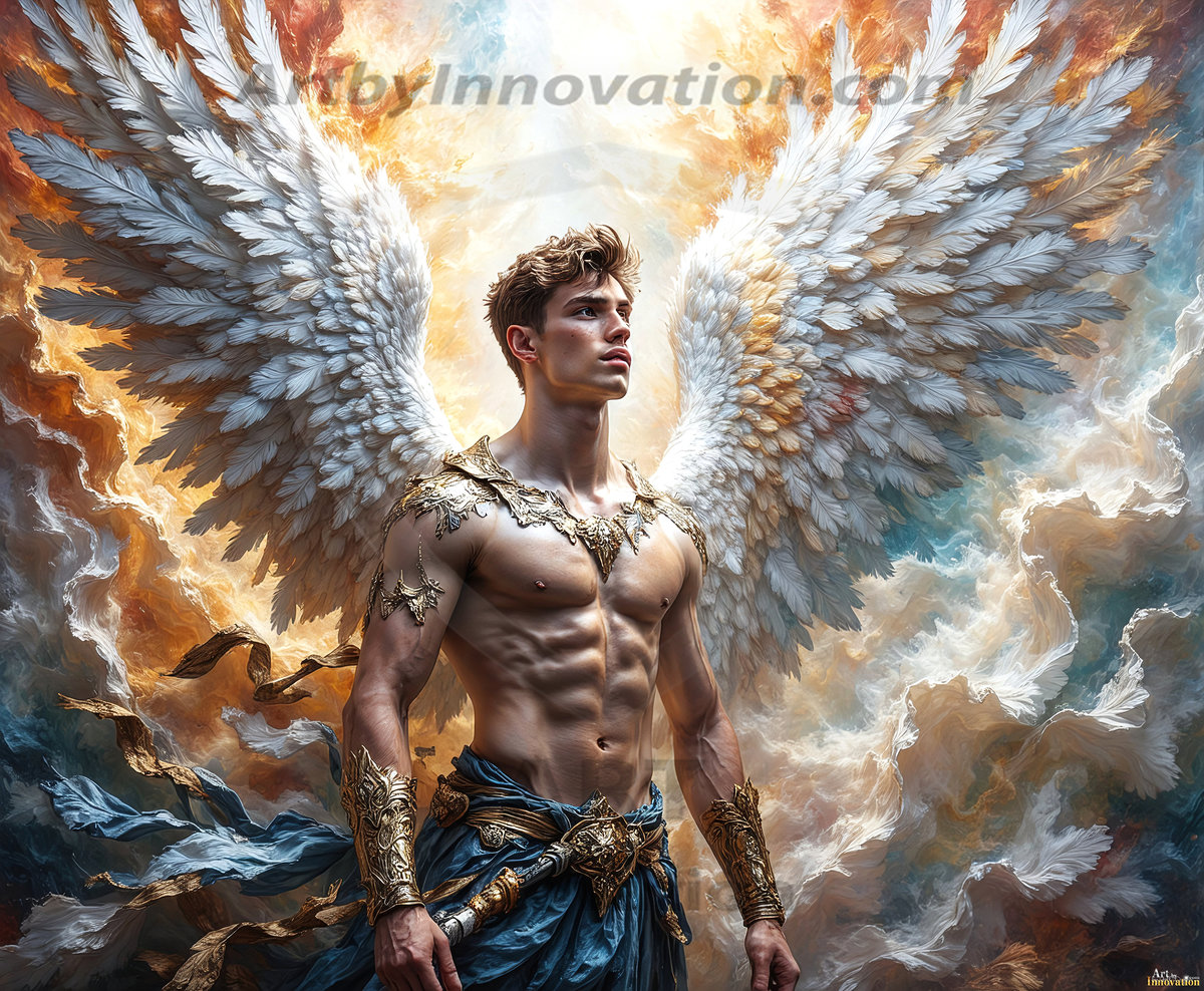 Where beauty meets the divine — in full color. This AI-generated collection features beautiful, handsome male angels with enormous, vibrantly colored shimmering wings that reflect and radiate the full spectrum of color. Raw, untamed divine energy emanates from each figure, drawing viewers in with an electrifying and captivating presence. Created using Flux.1 and ComfyUI by © Jeff Dupler | Art by Innovation | https://www.artbyinnovation.com