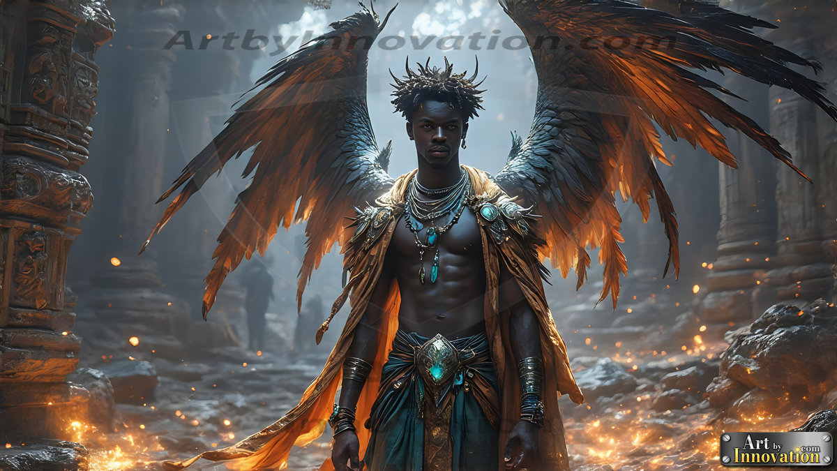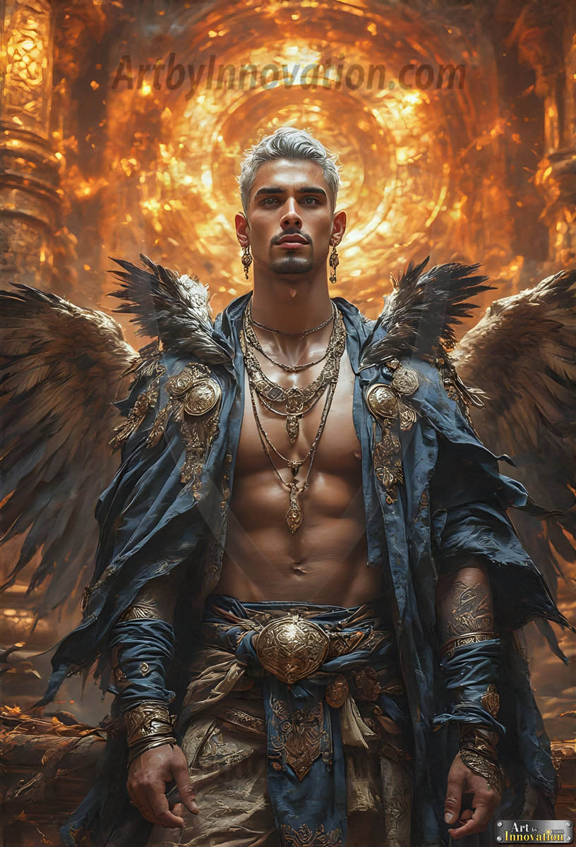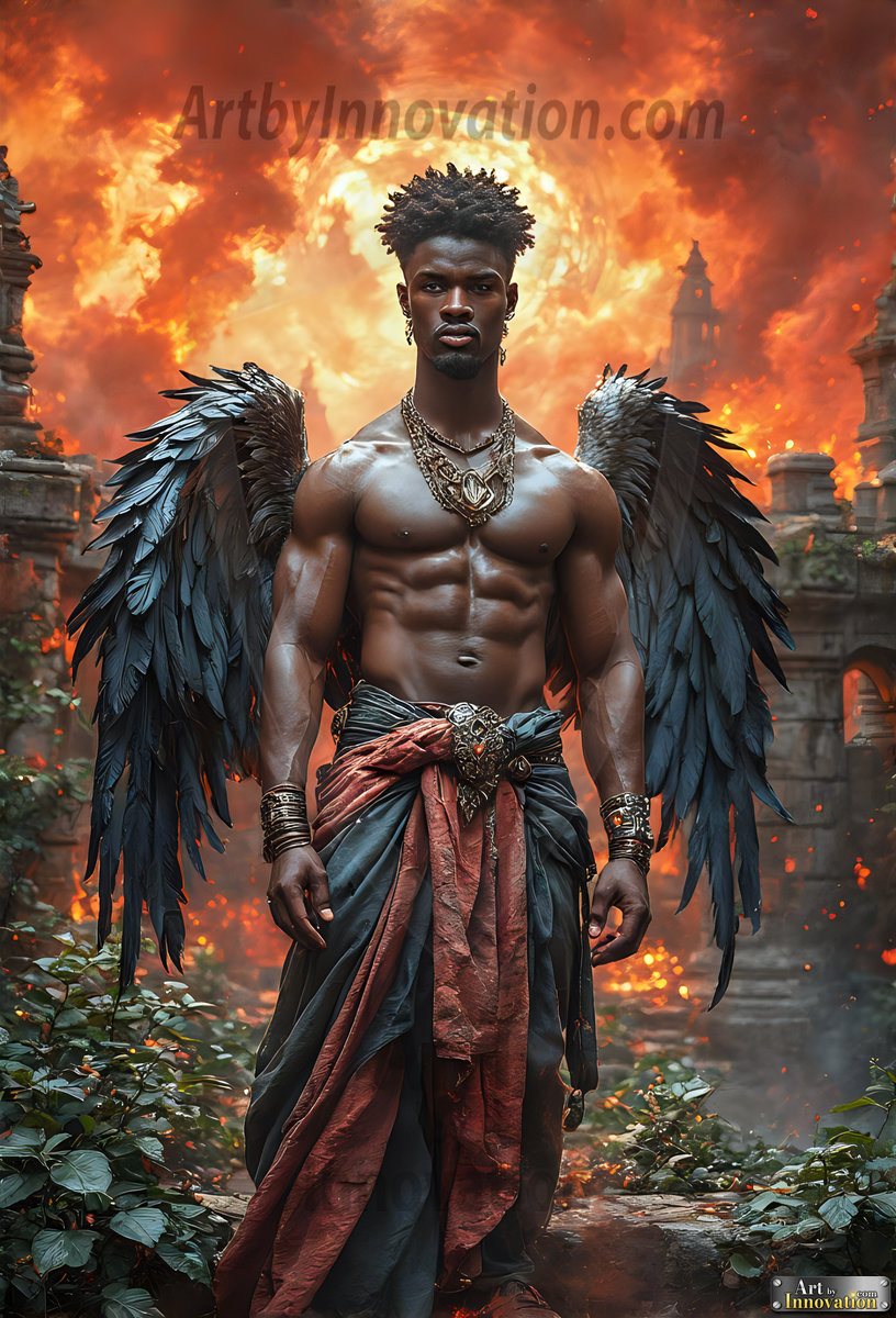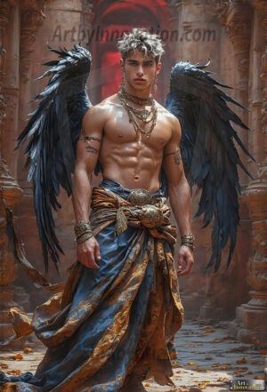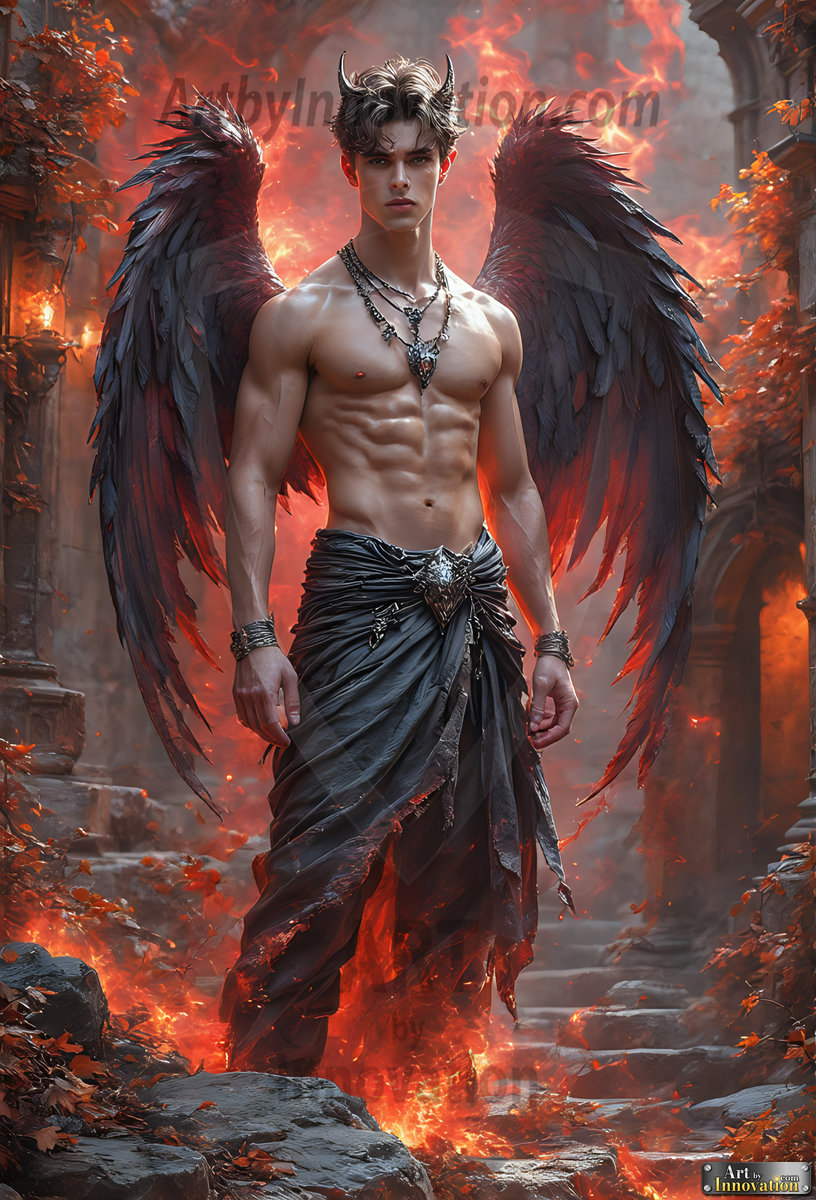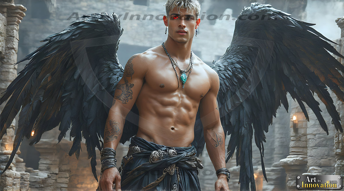 Fallen from grace — but never from beauty. This AI-generated dark angel collection features stunningly handsome fallen angels with massive black and silver feathered wings, set against gothic atmospheric backdrops of crumbling marble pillars, swirling crimson mists, and haunting desolate battlefields. Each image captures the raw, electrifying presence of a being between worlds — beautiful and terrifying in equal measure. Created using Flux.1 and ComfyUI by © Jeff Dupler | Art by Innovation | https://www.artbyinnovation.com