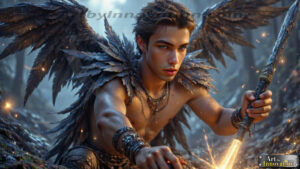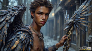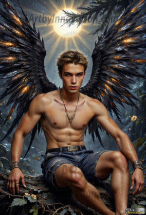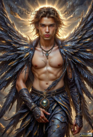 Fallen from grace — but never from beauty. This AI-generated dark angel collection features stunningly handsome fallen angels with massive black and silver feathered wings, set against gothic atmospheric backdrops of crumbling marble pillars, swirling crimson mists, and haunting desolate battlefields. Each image captures the raw, electrifying presence of a being between worlds — beautiful and terrifying in equal measure. Created using Flux.1 and ComfyUI by © Jeff Dupler | Art by Innovation | https://www.artbyinnovation.com