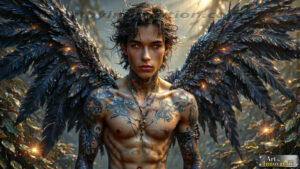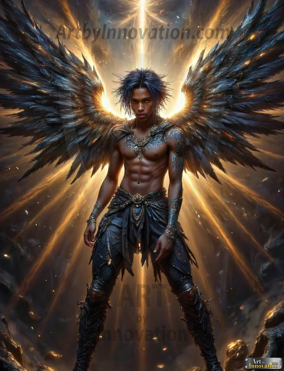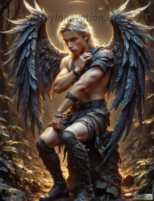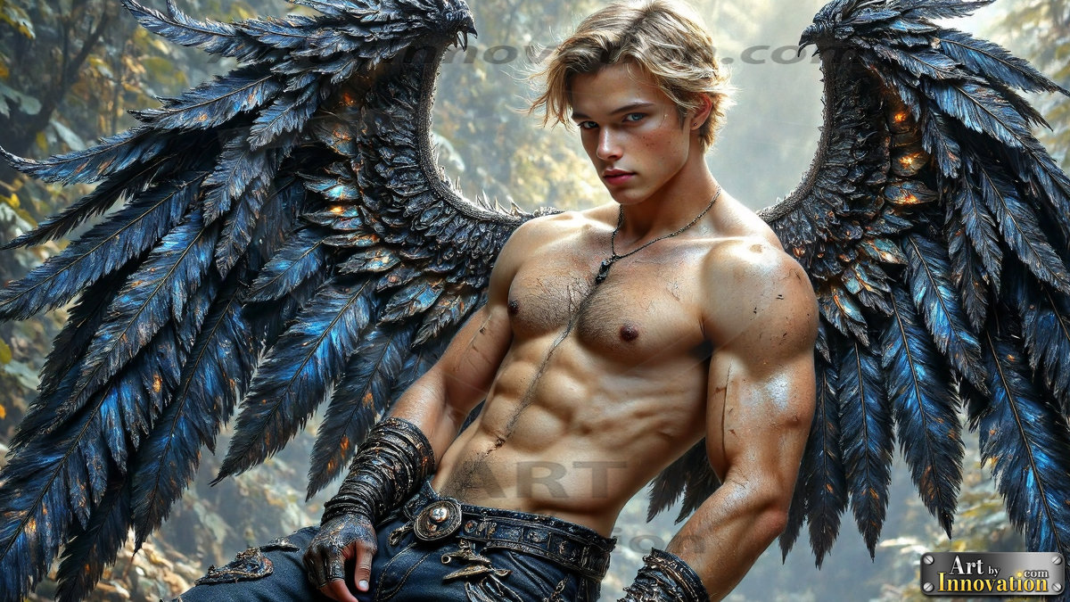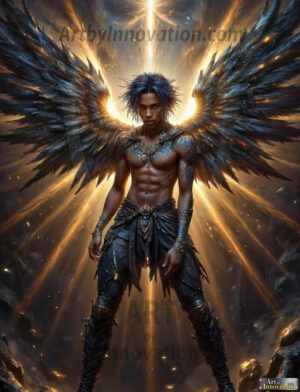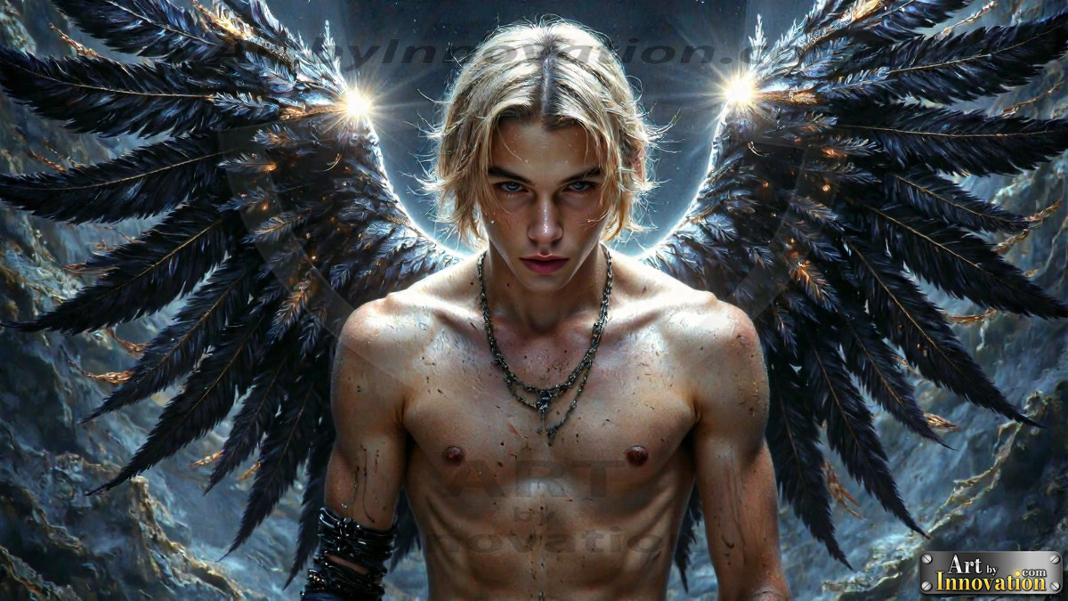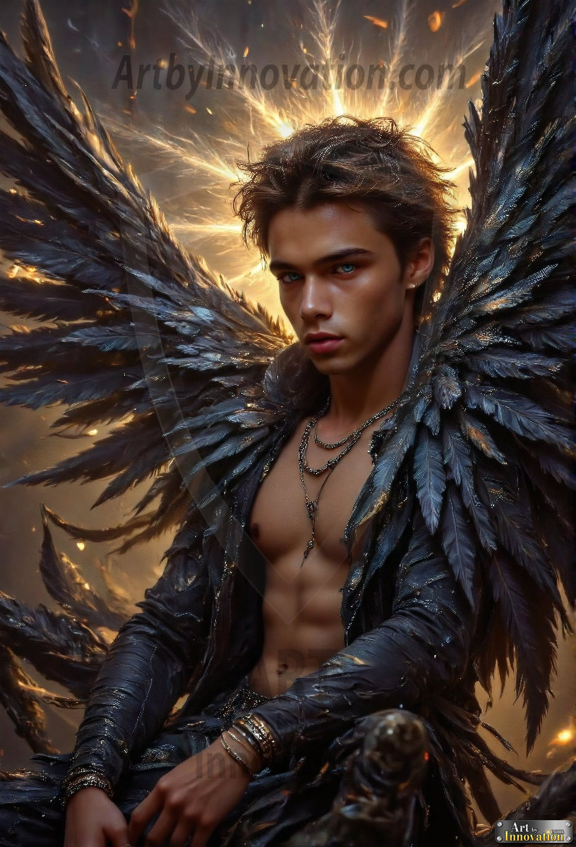 Fallen from grace — but never from beauty. This AI-generated dark angel collection features stunningly handsome fallen angels with massive black and silver feathered wings, set against gothic atmospheric backdrops of crumbling marble pillars, swirling crimson mists, and haunting desolate battlefields. Each image captures the raw, electrifying presence of a being between worlds — beautiful and terrifying in equal measure. Created using Flux.1 and ComfyUI by © Jeff Dupler | Art by Innovation | https://www.artbyinnovation.com