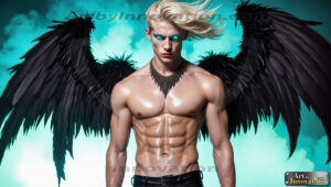 Fallen from grace — but never from beauty. This AI-generated dark angel collection features stunningly handsome fallen angels with massive black and silver feathered wings, set against gothic atmospheric backdrops of crumbling marble pillars, swirling crimson mists, and haunting desolate battlefields. Each image captures the raw, electrifying presence of a being between worlds — beautiful and terrifying in equal measure. Created using Flux.1 and ComfyUI by © Jeff Dupler | Art by Innovation | https://www.artbyinnovation.com