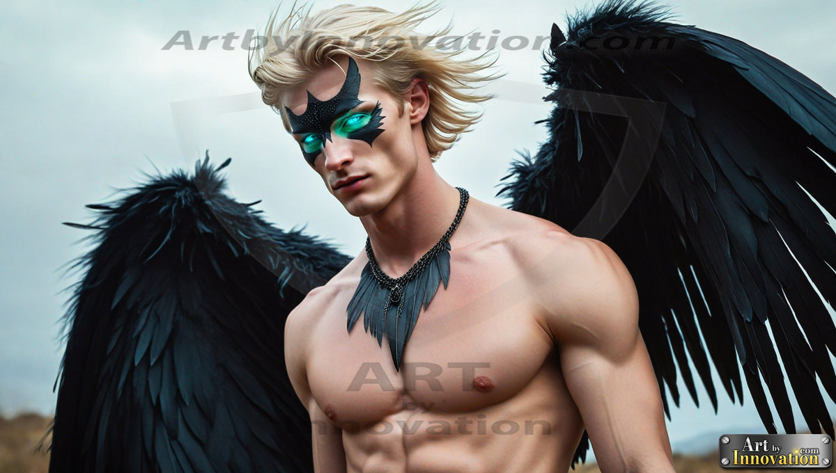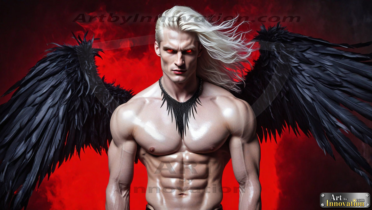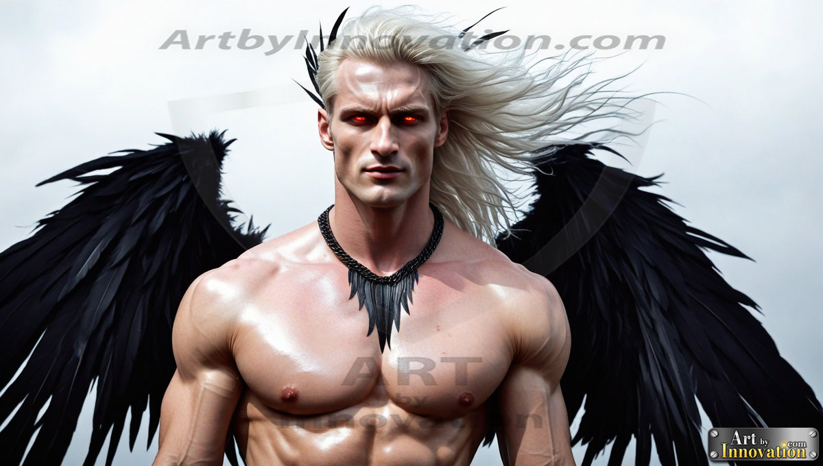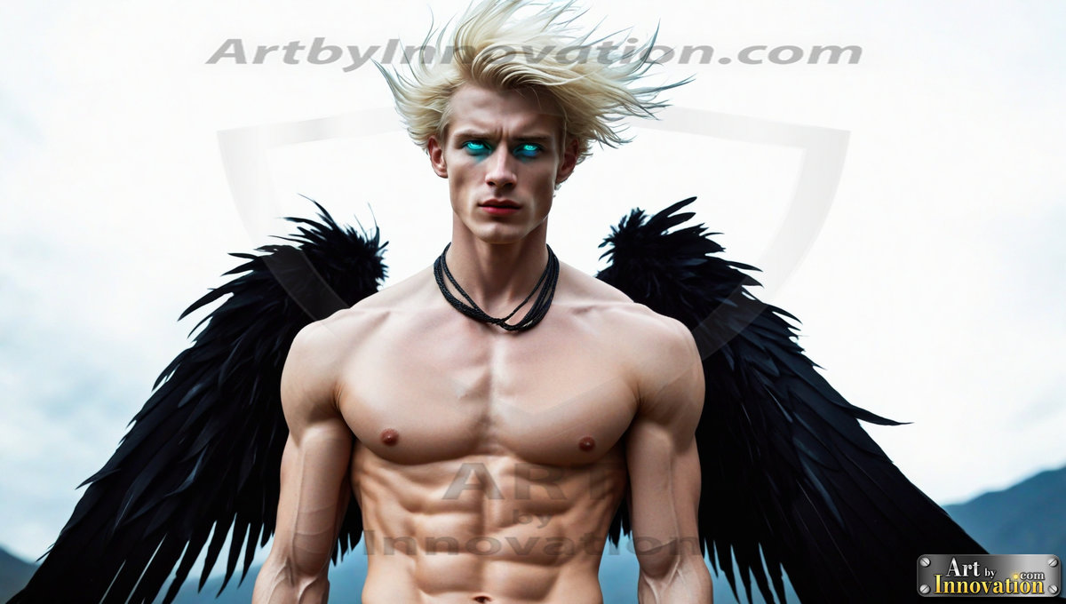 Fallen from grace — but never from beauty. This AI-generated dark angel collection features stunningly handsome fallen angels with massive black and silver feathered wings, set against gothic atmospheric backdrops of crumbling marble pillars, swirling crimson mists, and haunting desolate battlefields. Each image captures the raw, electrifying presence of a being between worlds — beautiful and terrifying in equal measure. Created using Flux.1 and ComfyUI by © Jeff Dupler | Art by Innovation | https://www.artbyinnovation.com