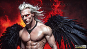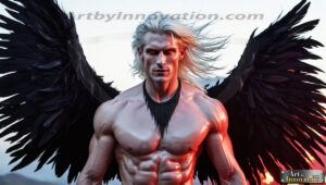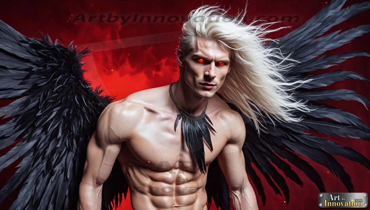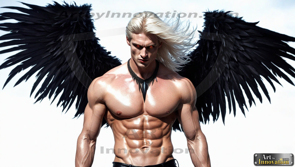 Fallen from grace — but never from beauty. This AI-generated dark angel collection features stunningly handsome fallen angels with massive black and silver feathered wings, set against gothic atmospheric backdrops of crumbling marble pillars, swirling crimson mists, and haunting desolate battlefields. Each image captures the raw, electrifying presence of a being between worlds — beautiful and terrifying in equal measure. Created using Flux.1 and ComfyUI by © Jeff Dupler | Art by Innovation | https://www.artbyinnovation.com