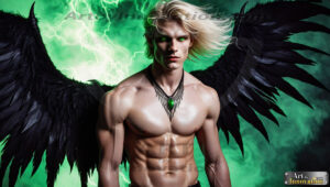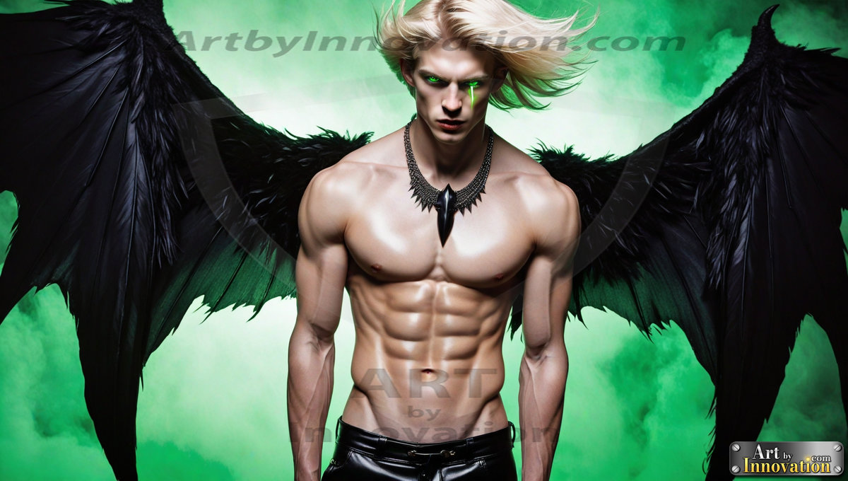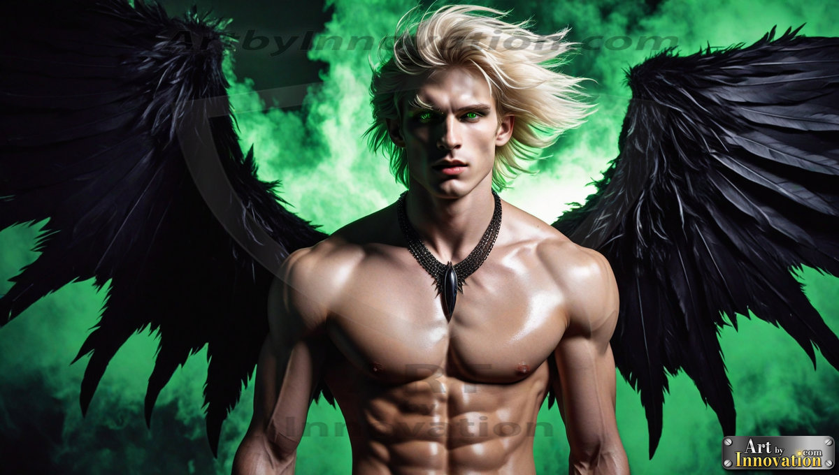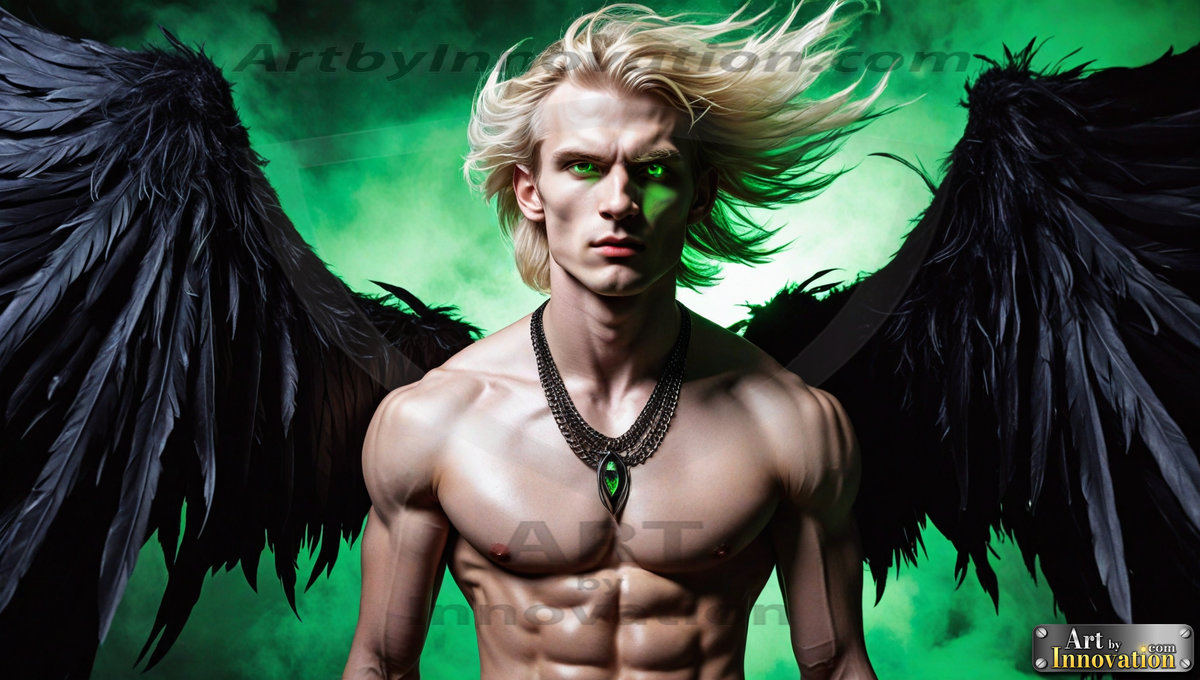 Fallen from grace — but never from beauty. This AI-generated dark angel collection features stunningly handsome fallen angels with massive black and silver feathered wings, set against gothic atmospheric backdrops of crumbling marble pillars, swirling crimson mists, and haunting desolate battlefields. Each image captures the raw, electrifying presence of a being between worlds — beautiful and terrifying in equal measure. Created using Flux.1 and ComfyUI by © Jeff Dupler | Art by Innovation | https://www.artbyinnovation.com