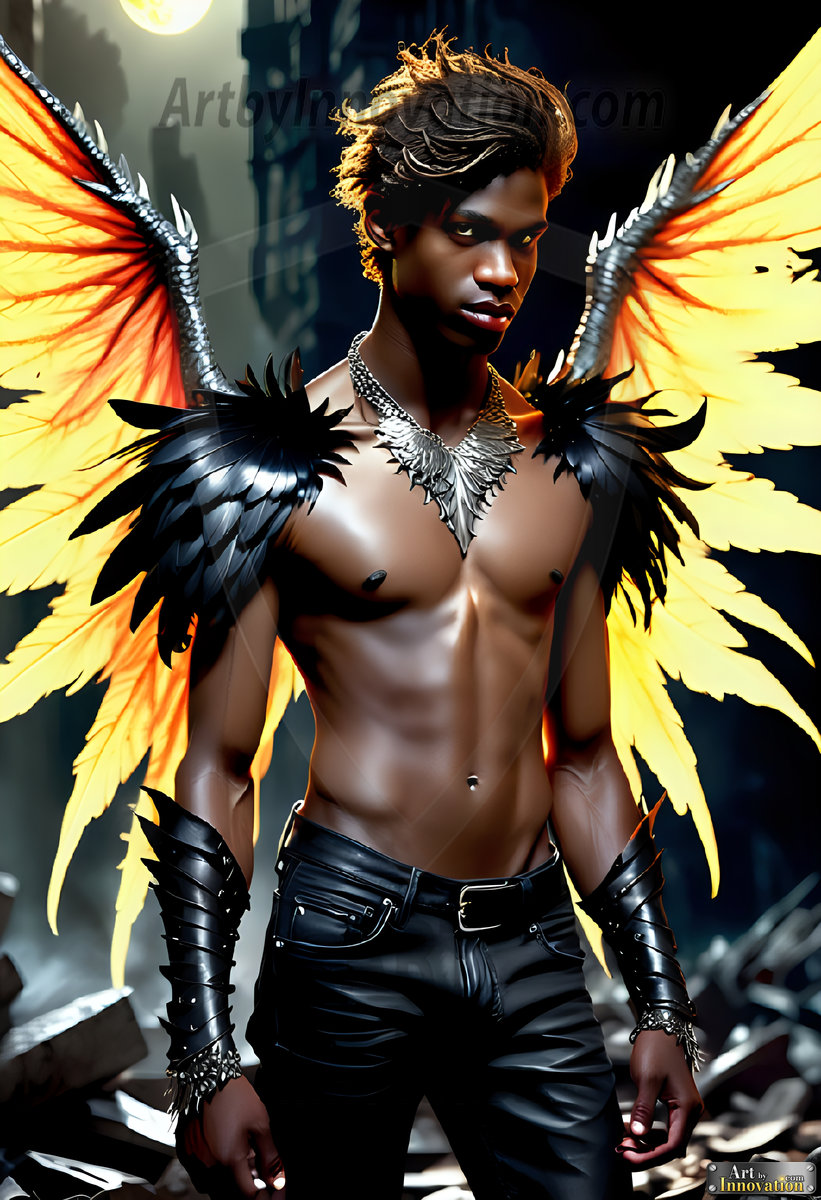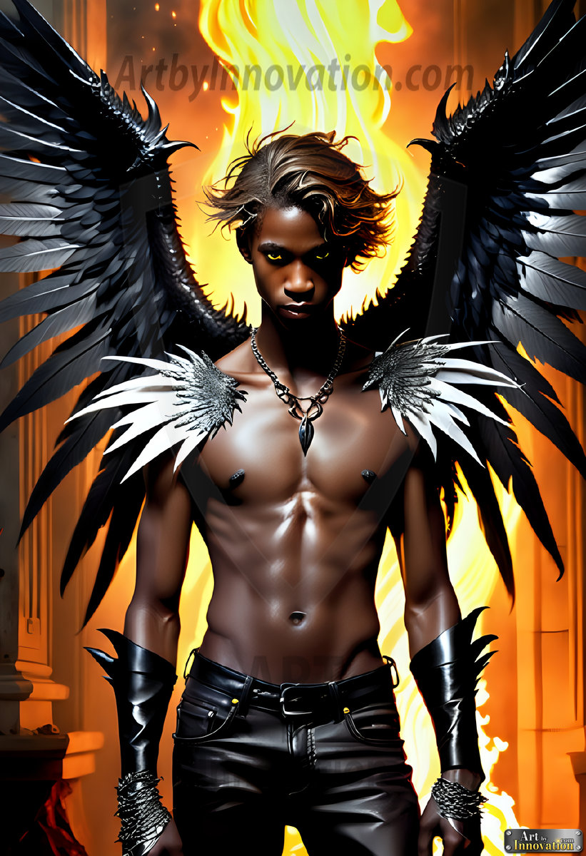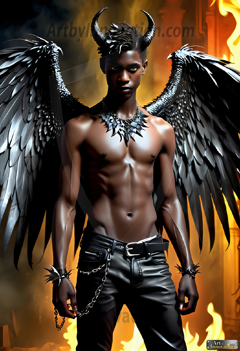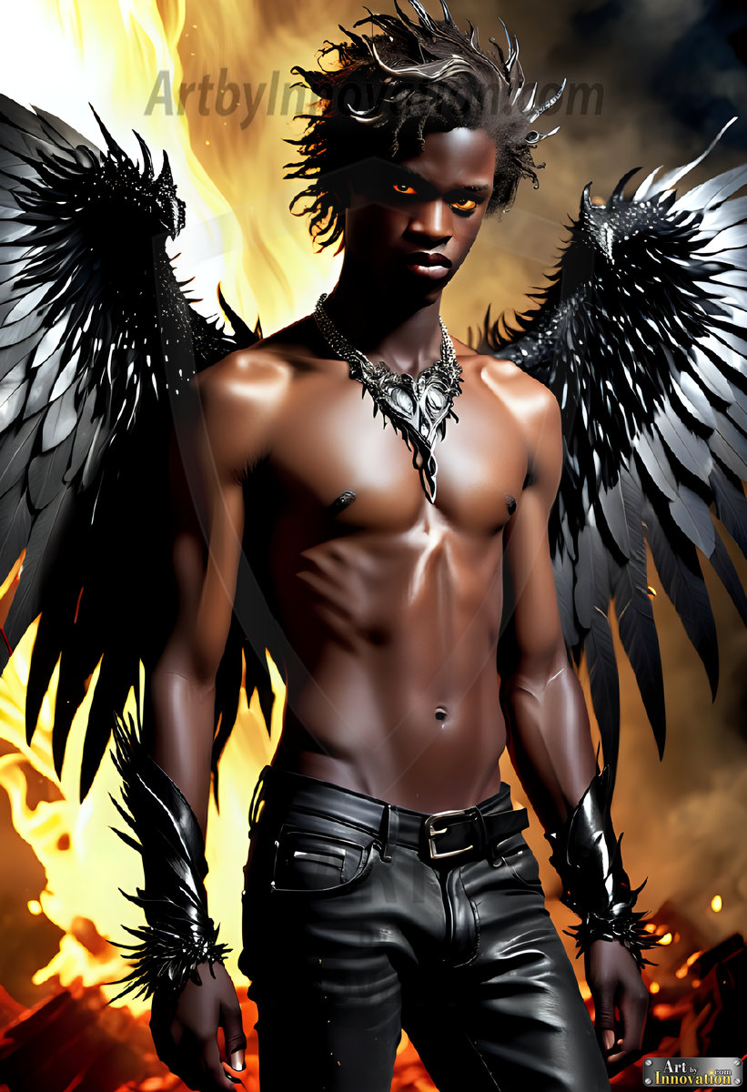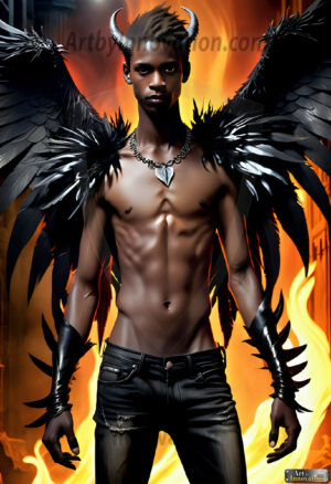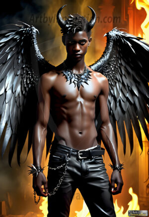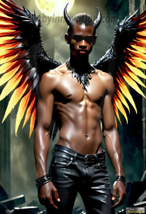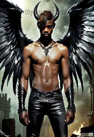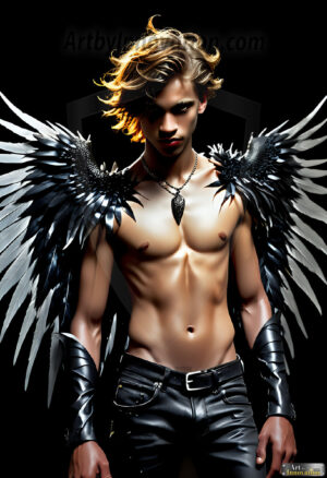 Fallen from grace — but never from beauty. This AI-generated dark angel collection features stunningly handsome fallen angels with massive black and silver feathered wings, set against gothic atmospheric backdrops of crumbling marble pillars, swirling crimson mists, and haunting desolate battlefields. Each image captures the raw, electrifying presence of a being between worlds — beautiful and terrifying in equal measure. Created using Flux.1 and ComfyUI by © Jeff Dupler | Art by Innovation | https://www.artbyinnovation.com
