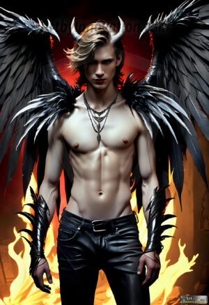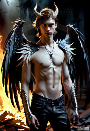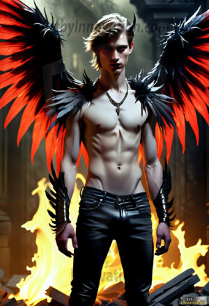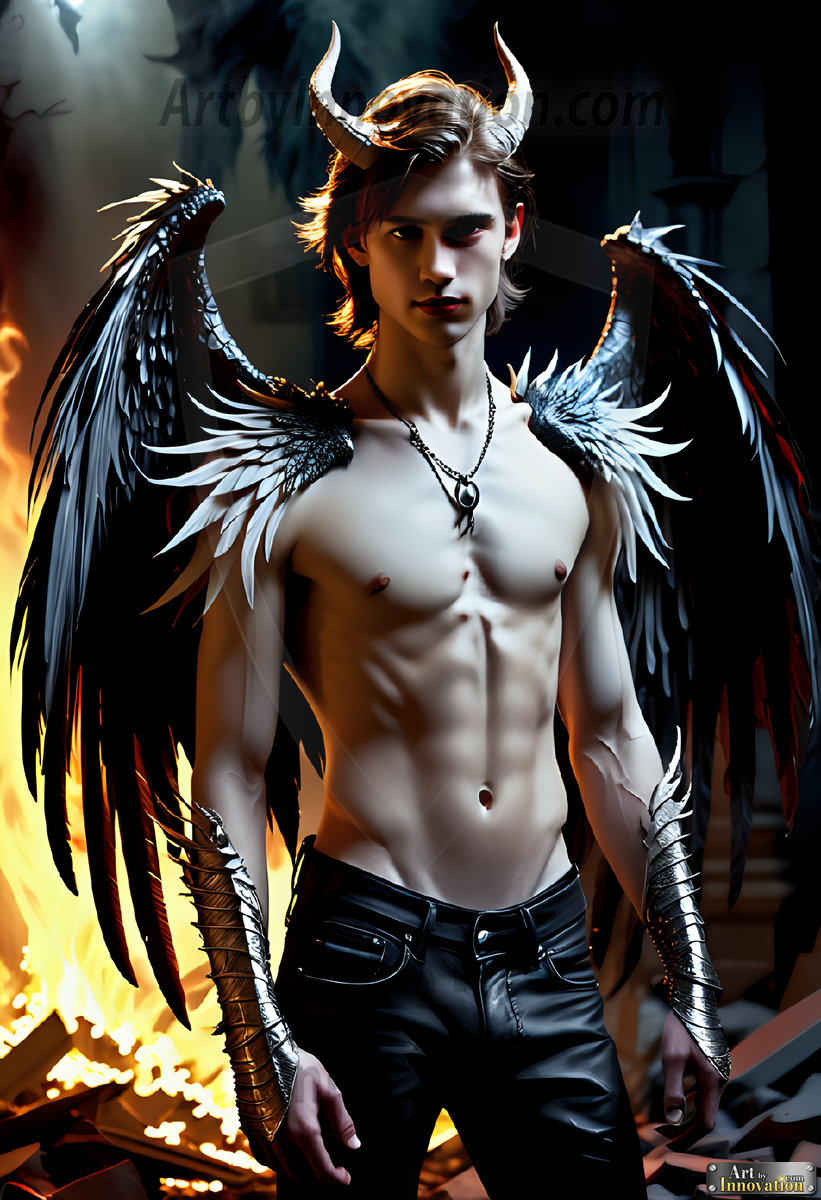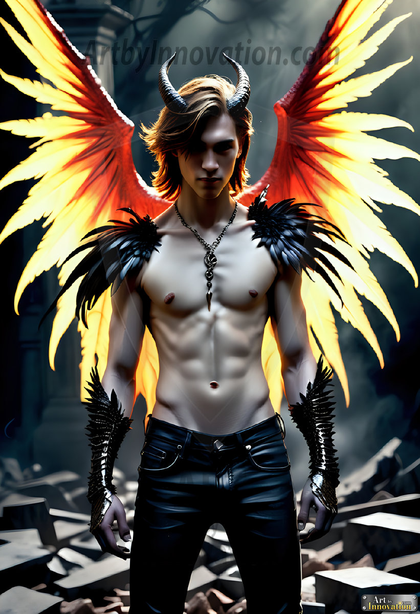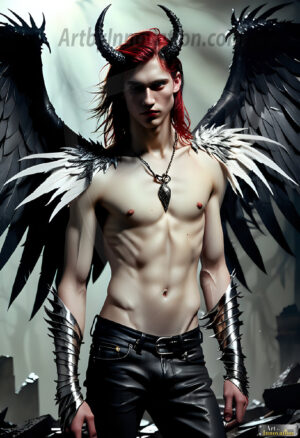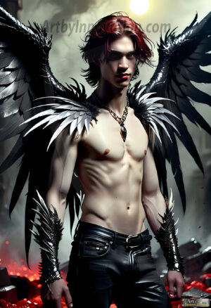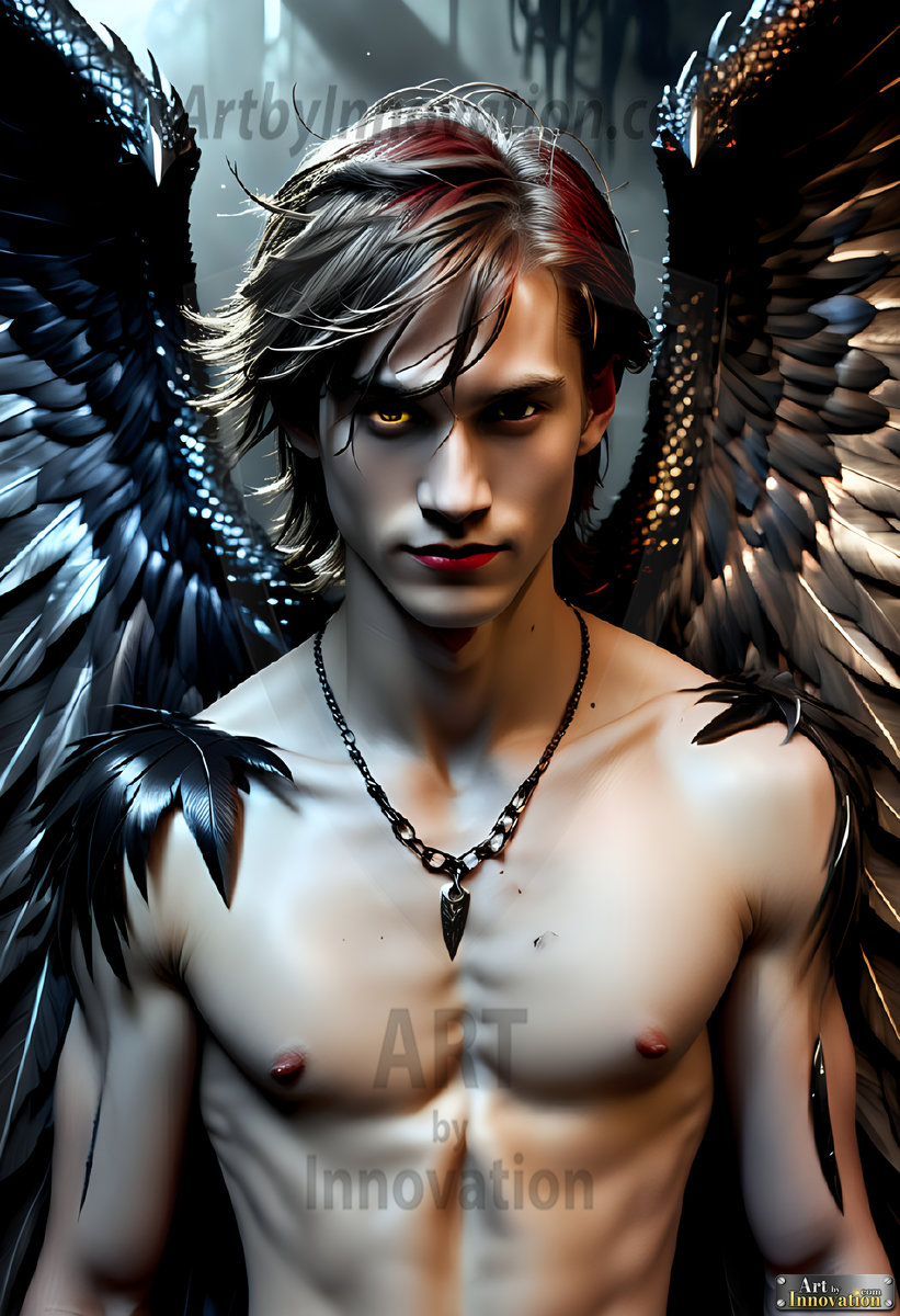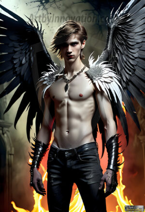 Fallen from grace — but never from beauty. This AI-generated dark angel collection features stunningly handsome fallen angels with massive black and silver feathered wings, set against gothic atmospheric backdrops of crumbling marble pillars, swirling crimson mists, and haunting desolate battlefields. Each image captures the raw, electrifying presence of a being between worlds — beautiful and terrifying in equal measure. Created using Flux.1 and ComfyUI by © Jeff Dupler | Art by Innovation | https://www.artbyinnovation.com