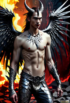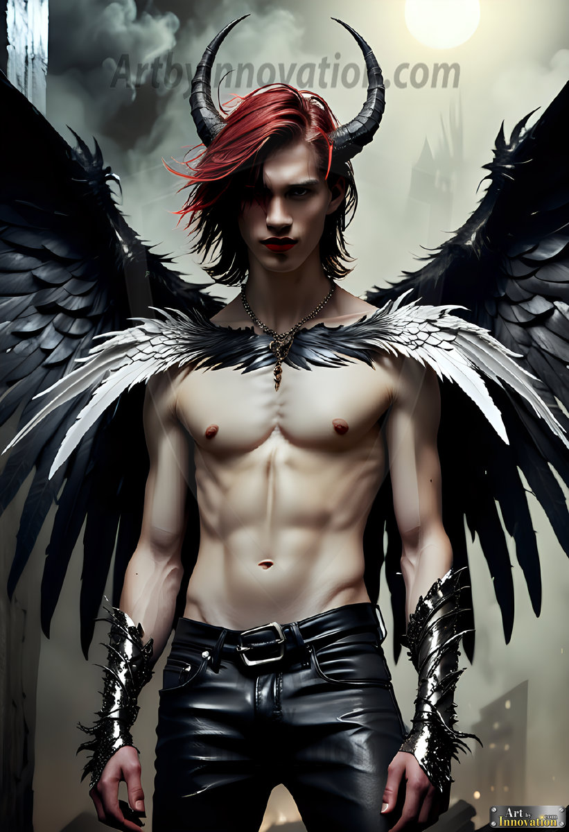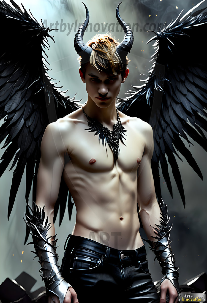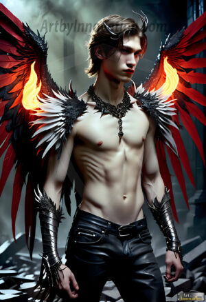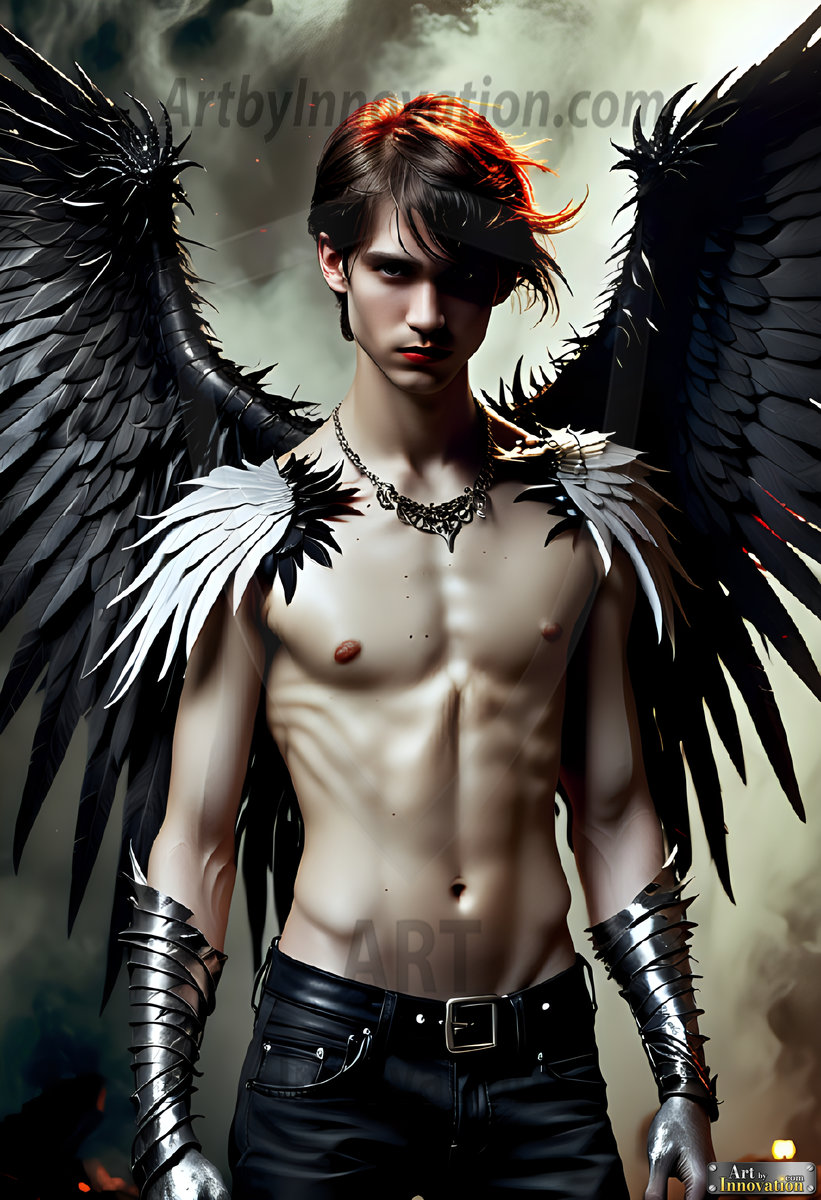 Fallen from grace — but never from beauty. This AI-generated dark angel collection features stunningly handsome fallen angels with massive black and silver feathered wings, set against gothic atmospheric backdrops of crumbling marble pillars, swirling crimson mists, and haunting desolate battlefields. Each image captures the raw, electrifying presence of a being between worlds — beautiful and terrifying in equal measure. Created using Flux.1 and ComfyUI by © Jeff Dupler | Art by Innovation | https://www.artbyinnovation.com