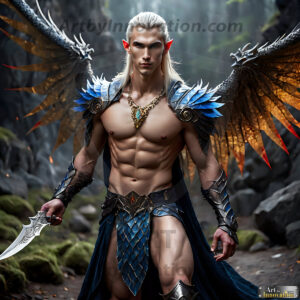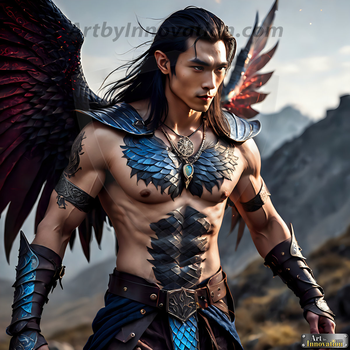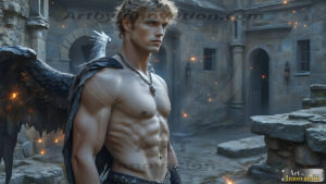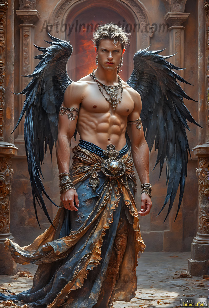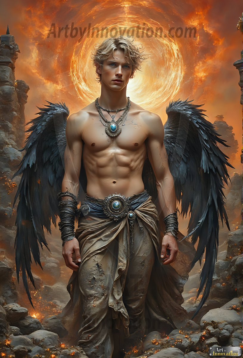 Fallen from grace — but never from beauty. This AI-generated dark angel collection features stunningly handsome fallen angels with massive black and silver feathered wings, set against gothic atmospheric backdrops of crumbling marble pillars, swirling crimson mists, and haunting desolate battlefields. Each image captures the raw, electrifying presence of a being between worlds — beautiful and terrifying in equal measure. Created using Flux.1 and ComfyUI by © Jeff Dupler | Art by Innovation | https://www.artbyinnovation.com