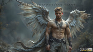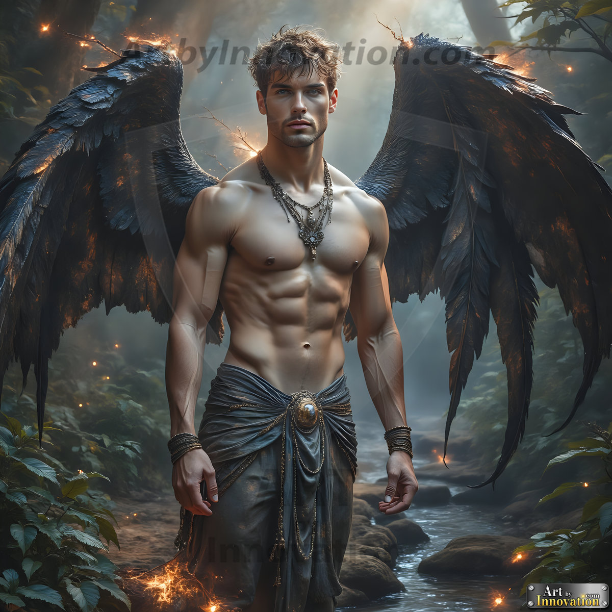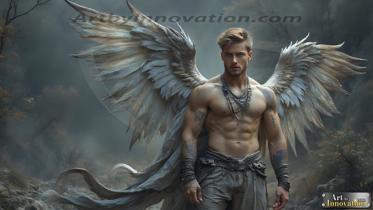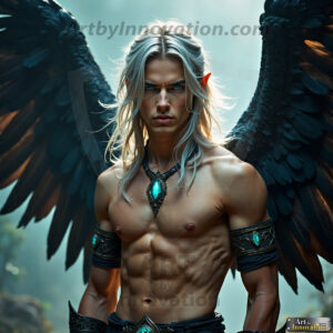 Fallen from grace — but never from beauty. This AI-generated dark angel collection features stunningly handsome fallen angels with massive black and silver feathered wings, set against gothic atmospheric backdrops of crumbling marble pillars, swirling crimson mists, and haunting desolate battlefields. Each image captures the raw, electrifying presence of a being between worlds — beautiful and terrifying in equal measure. Created using Flux.1 and ComfyUI by © Jeff Dupler | Art by Innovation | https://www.artbyinnovation.com