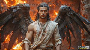 ByjeffAI-generated hot male demons with dark wings and glowing eyes — handsome, dangerous, and seductive from the ruins of hell.
