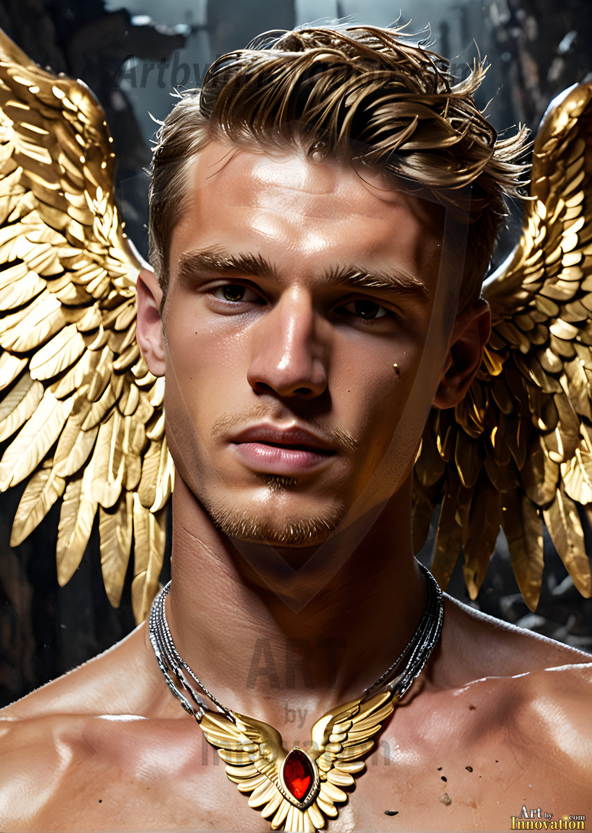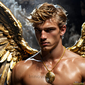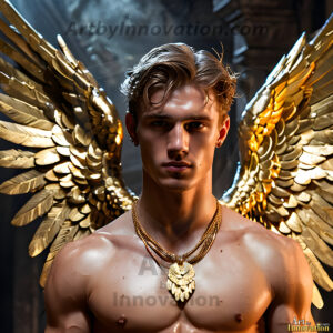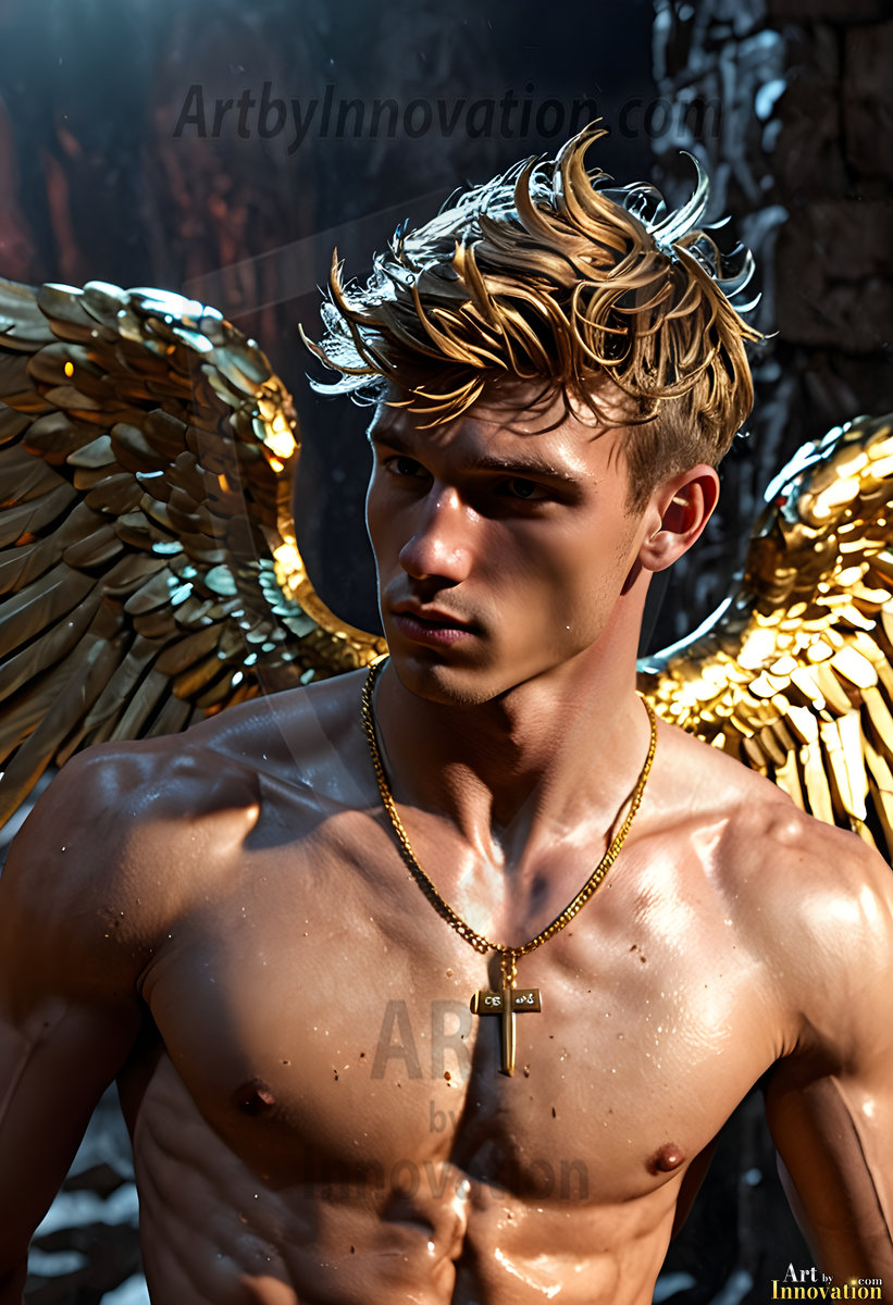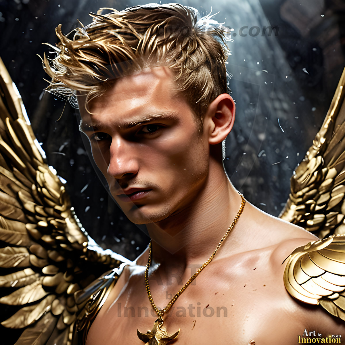 God's most radiant warriors. This AI-generated golden angel collection features stunningly handsome male angels with enormous golden feathered wings, bathed in golden radiant light rays and divine halo lighting. Set against backdrops ranging from chaotic battlefields to celestial heavenly realms, each golden angel radiates a divine beauty that is both commanding and breathtaking. Created using Flux.1 and ComfyUI by © Jeff Dupler | Art by Innovation | https://www.artbyinnovation.com