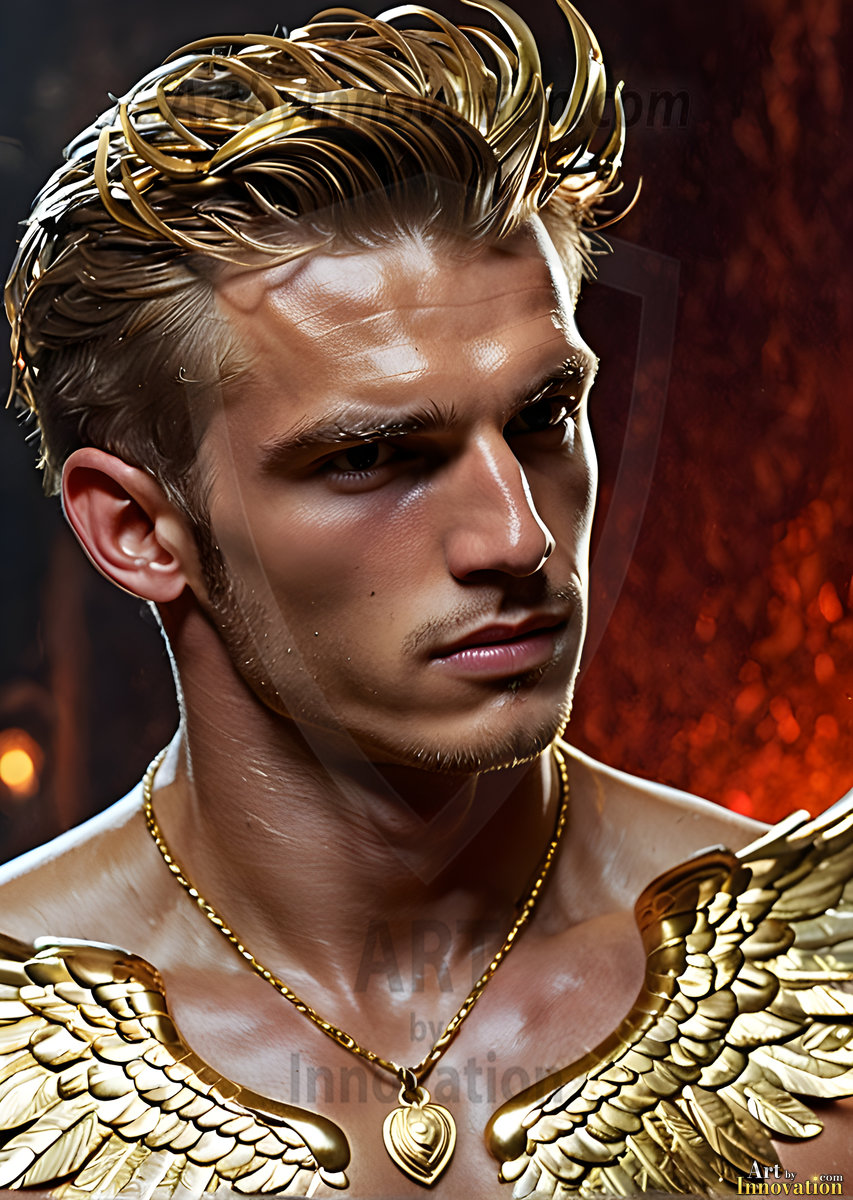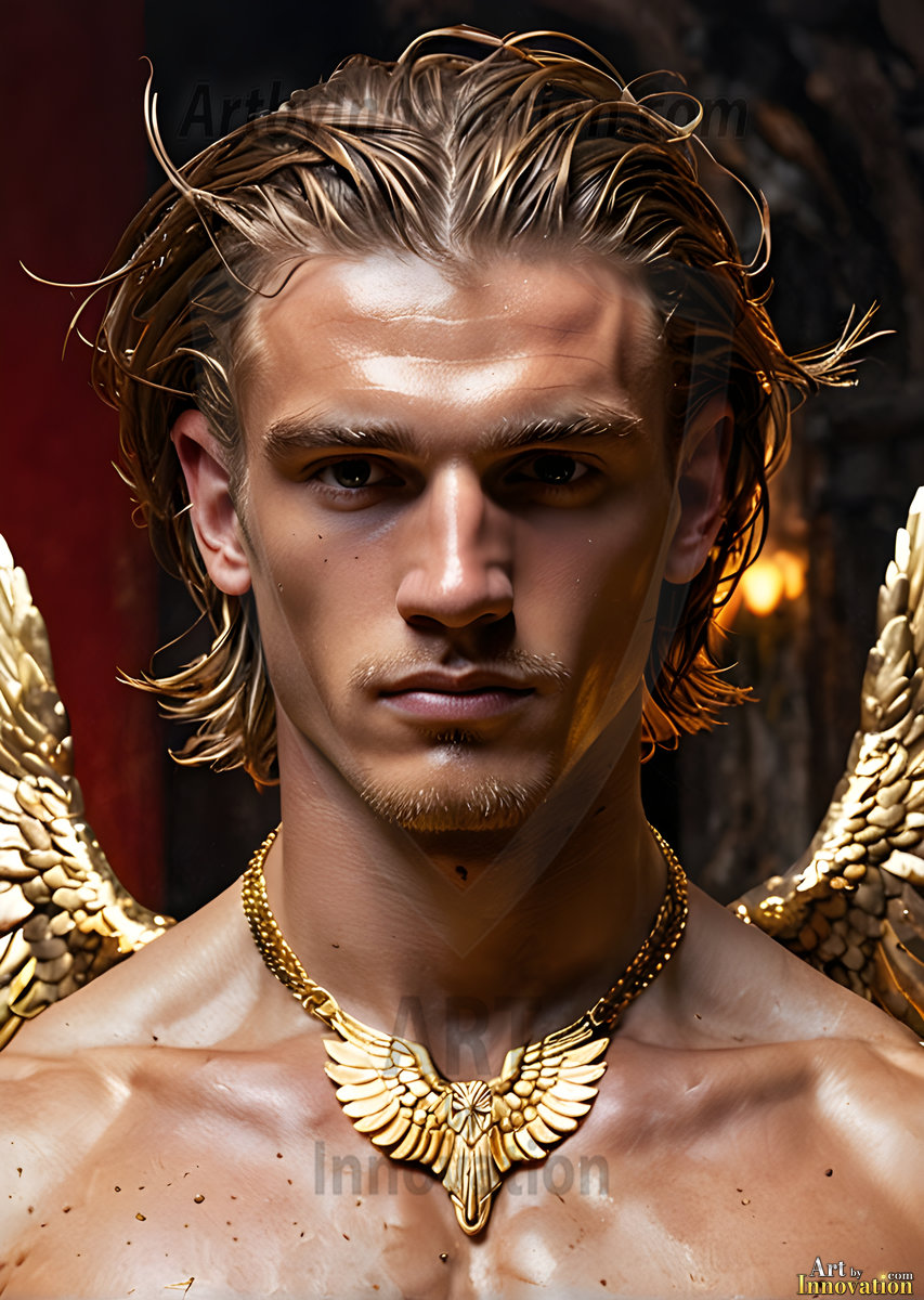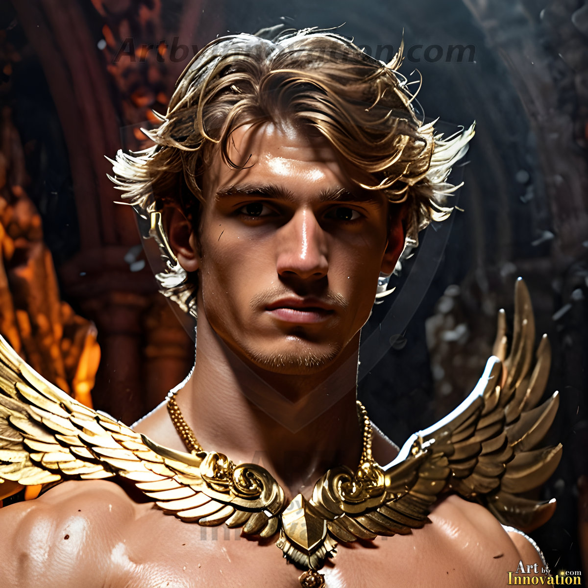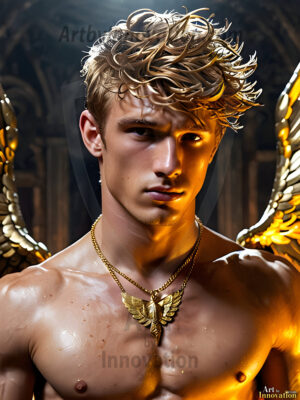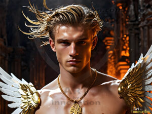 God's most radiant warriors. This AI-generated golden angel collection features stunningly handsome male angels with enormous golden feathered wings, bathed in golden radiant light rays and divine halo lighting. Set against backdrops ranging from chaotic battlefields to celestial heavenly realms, each golden angel radiates a divine beauty that is both commanding and breathtaking. Created using Flux.1 and ComfyUI by © Jeff Dupler | Art by Innovation | https://www.artbyinnovation.com