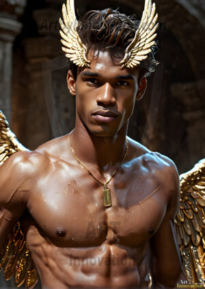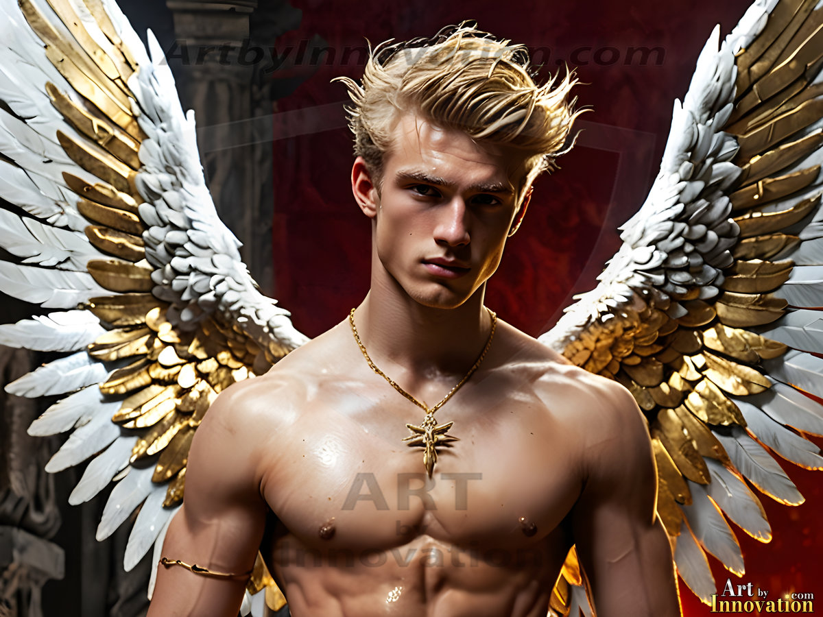 God's most radiant warriors. This AI-generated golden angel collection features stunningly handsome male angels with enormous golden feathered wings, bathed in golden radiant light rays and divine halo lighting. Set against backdrops ranging from chaotic battlefields to celestial heavenly realms, each golden angel radiates a divine beauty that is both commanding and breathtaking. Created using Flux.1 and ComfyUI by © Jeff Dupler | Art by Innovation | https://www.artbyinnovation.com