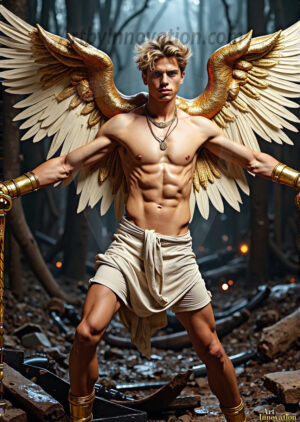 ByjeffHeaven's Warriors descend. This AI-generated collection features stunningly handsome male angels with enormous, shimmering feathered wings — raw, untamed divine energy radiating from their chiseled forms. Set against heavenly skies, golden celestial cities, and ethereal cloudscapes, each angel exudes both breathtaking beauty and formidable divine power. Created using Flux.1 and ComfyUI by © Jeff Dupler…