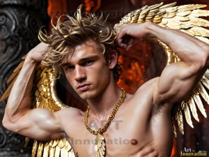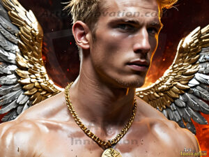 ByjeffHeaven's Warriors descend. This AI-generated collection features stunningly handsome male angels with enormous, shimmering feathered wings — raw, untamed divine energy radiating from their chiseled forms. Set against heavenly skies, golden celestial cities, and ethereal cloudscapes, each angel exudes both breathtaking beauty and formidable divine power. Created using Flux.1 and ComfyUI by © Jeff Dupler…