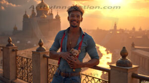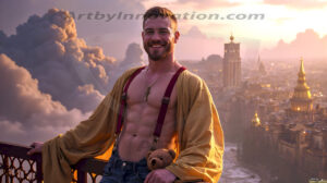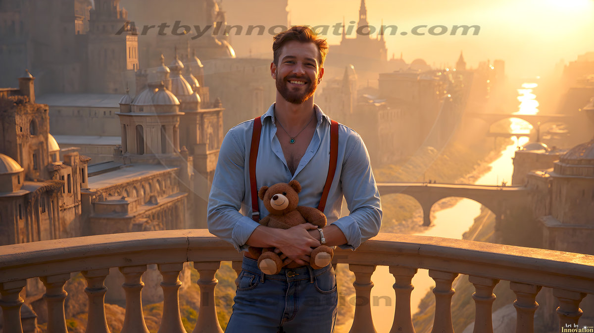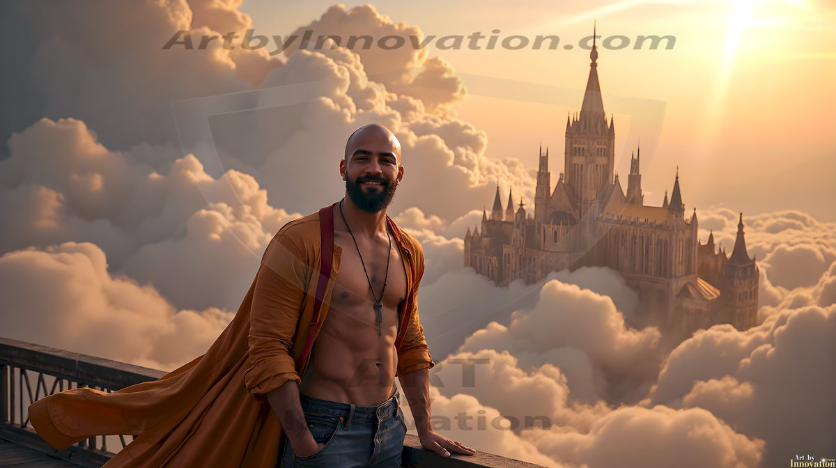 Welcome to the Golden City. This AI-generated collection features beautiful, glamorous, handsome men on balconies overlooking a breathtaking golden city in the heavens — massive majestic gothic architecture, golden rivers flowing to the edge of the galaxy, stars and constellations sparkling in a vast cosmic sky. Each image evokes a sense of reverence, freedom, and divine glory. Available in young men (teens and 20s), mature men, and Daddies editions. Created using Flux.1 and ComfyUI by © Jeff Dupler | Art by Innovation | https://www.artbyinnovation.com