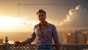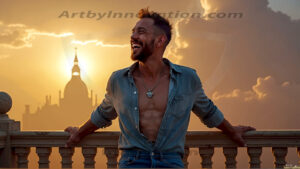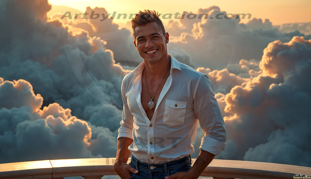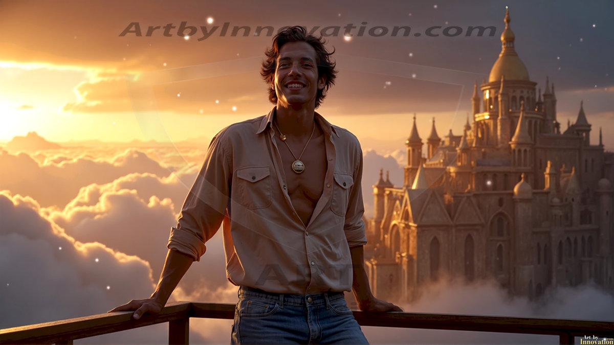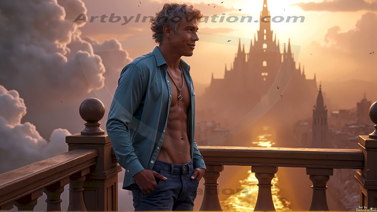 Welcome to the Golden City. This AI-generated collection features beautiful, glamorous, handsome men on balconies overlooking a breathtaking golden city in the heavens — massive majestic gothic architecture, golden rivers flowing to the edge of the galaxy, stars and constellations sparkling in a vast cosmic sky. Each image evokes a sense of reverence, freedom, and divine glory. Available in young men (teens and 20s), mature men, and Daddies editions. Created using Flux.1 and ComfyUI by © Jeff Dupler | Art by Innovation | https://www.artbyinnovation.com