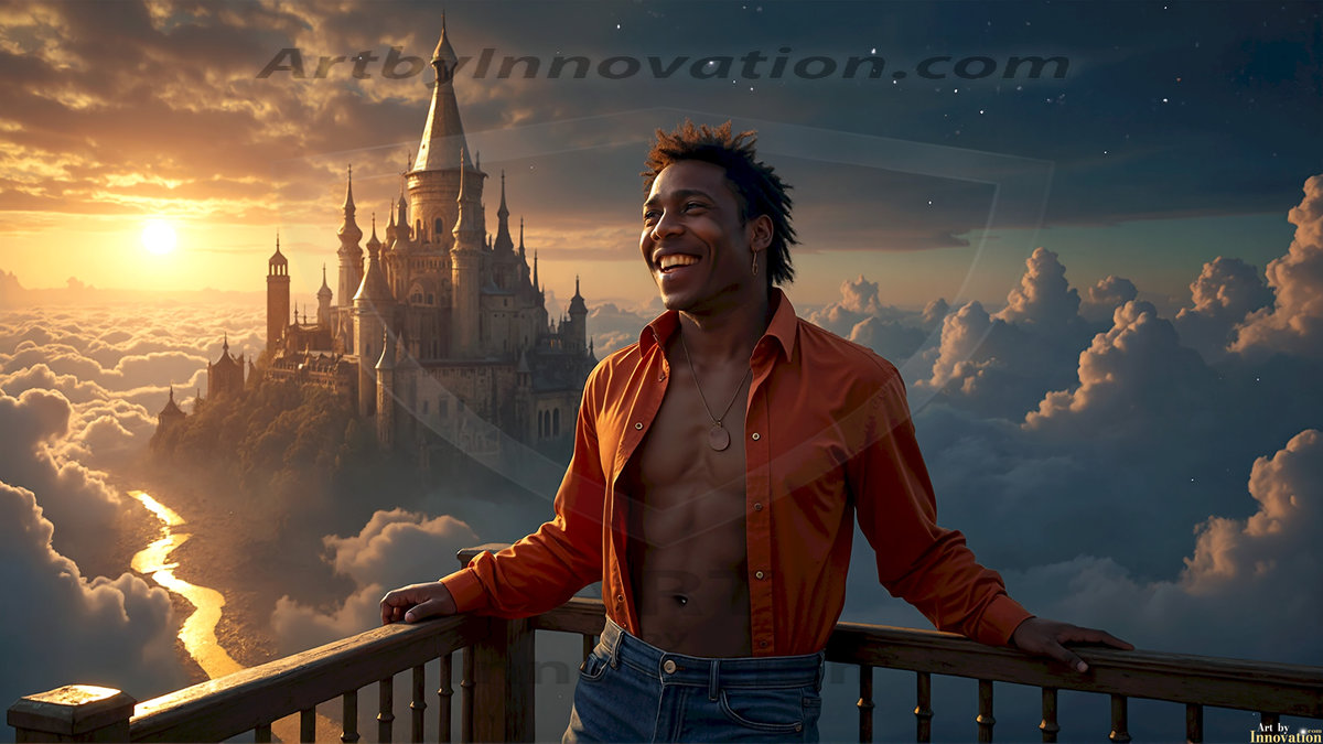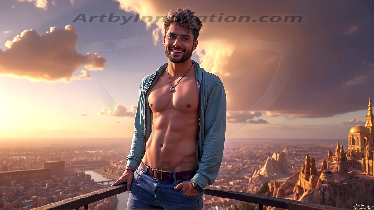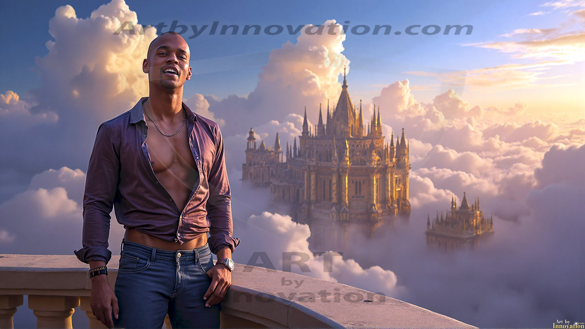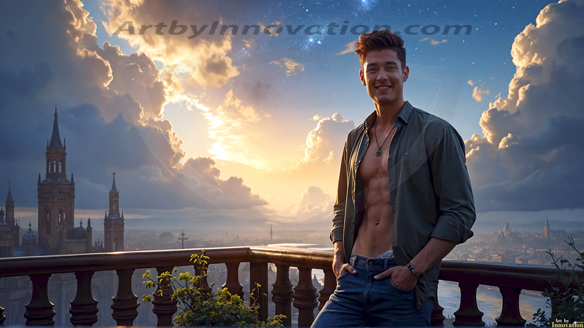 Welcome to the Golden City. This AI-generated collection features beautiful, glamorous, handsome men on balconies overlooking a breathtaking golden city in the heavens — massive majestic gothic architecture, golden rivers flowing to the edge of the galaxy, stars and constellations sparkling in a vast cosmic sky. Each image evokes a sense of reverence, freedom, and divine glory. Available in young men (teens and 20s), mature men, and Daddies editions. Created using Flux.1 and ComfyUI by © Jeff Dupler | Art by Innovation | https://www.artbyinnovation.com