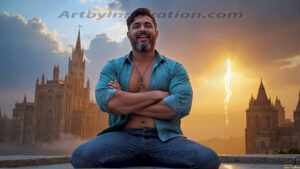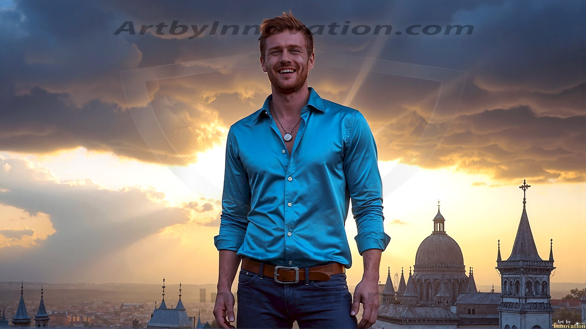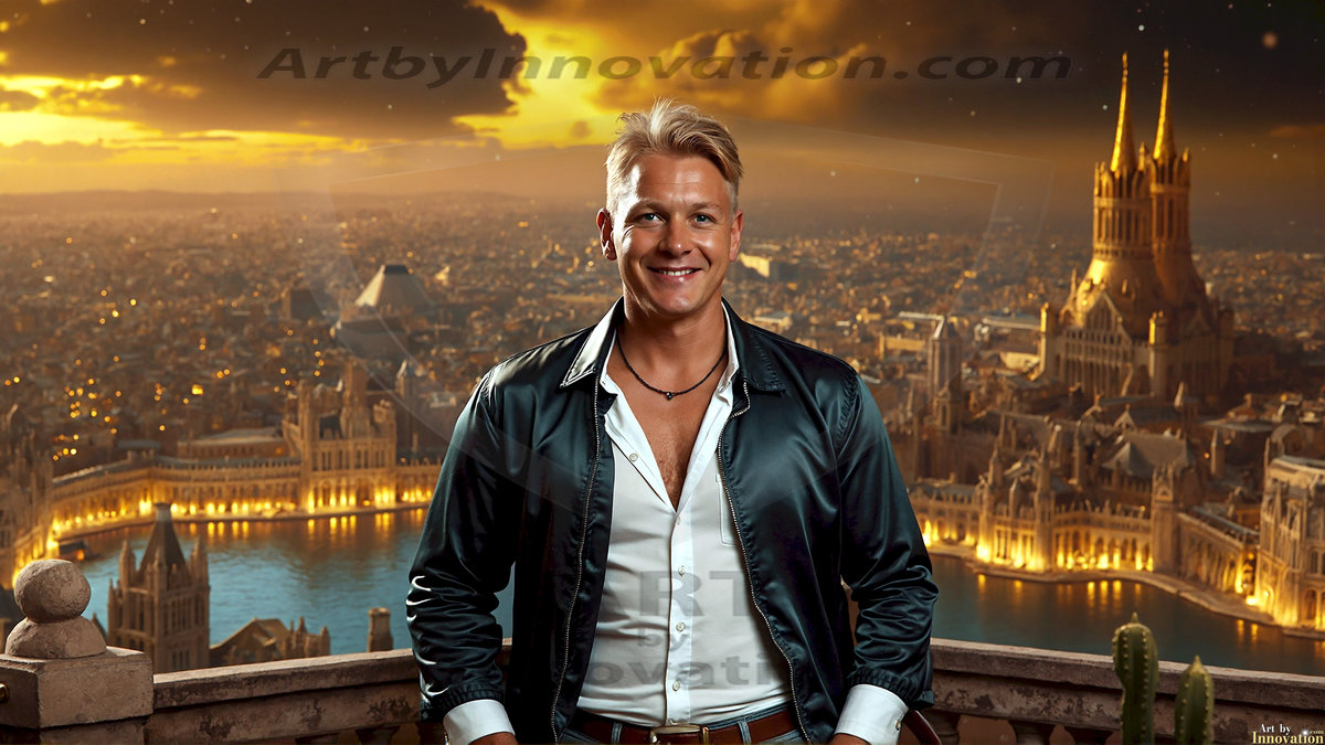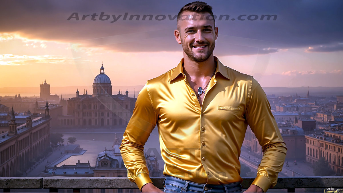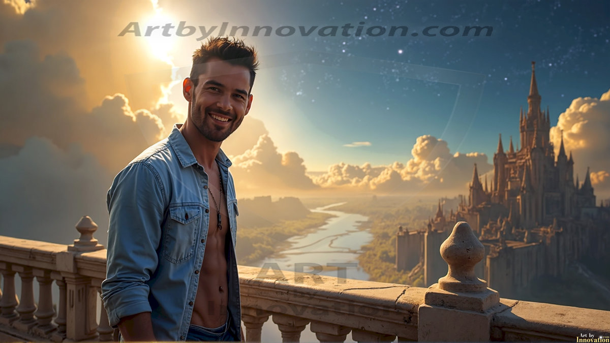 Welcome to the Golden City. This AI-generated collection features beautiful, glamorous, handsome men on balconies overlooking a breathtaking golden city in the heavens — massive majestic gothic architecture, golden rivers flowing to the edge of the galaxy, stars and constellations sparkling in a vast cosmic sky. Each image evokes a sense of reverence, freedom, and divine glory. Available in young men (teens and 20s), mature men, and Daddies editions. Created using Flux.1 and ComfyUI by © Jeff Dupler | Art by Innovation | https://www.artbyinnovation.com