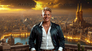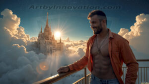 ByjeffThe enhanced Golden City Collection v2 — AI-generated handsome men on heavenly balconies, elevated quality. 255 images.