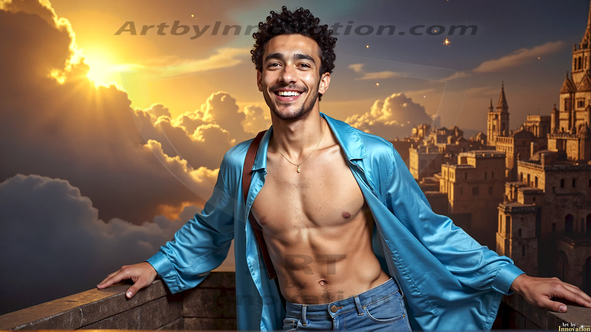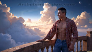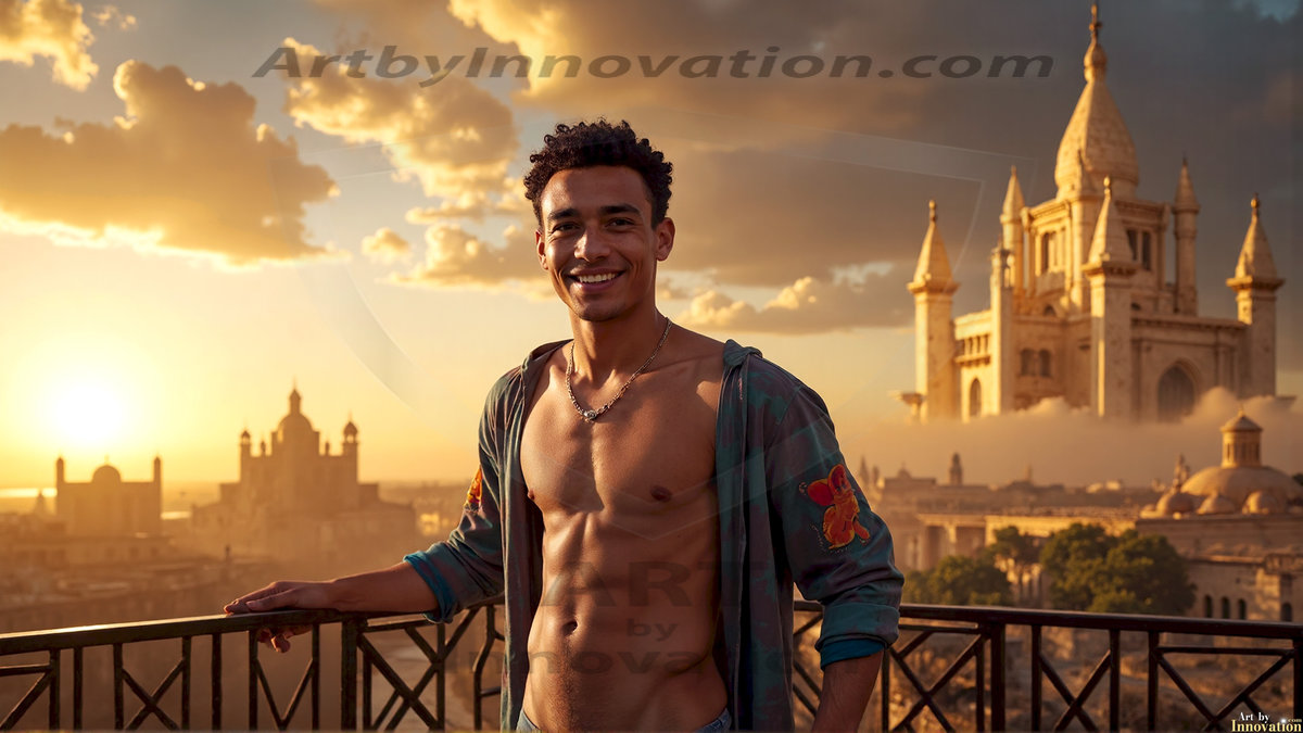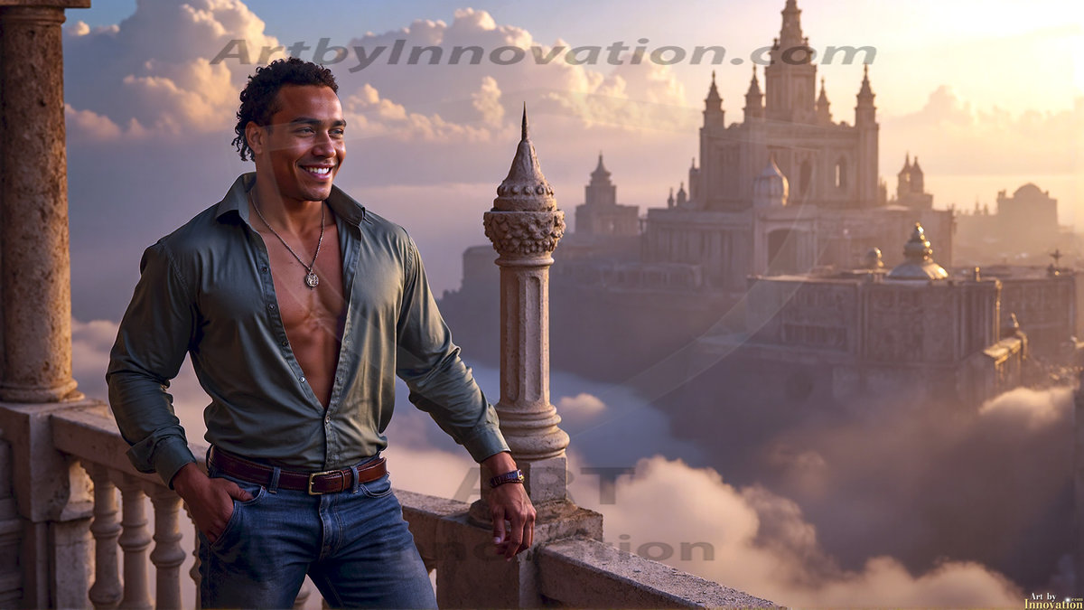Welcome to the Golden City. This AI-generated collection features beautiful, glamorous, handsome men on balconies overlooking a breathtaking golden city in the heavens — massive majestic gothic architecture, golden rivers flowing to the edge of the galaxy, stars and constellations sparkling in a vast cosmic sky. Each image evokes a sense of reverence, freedom, and divine glory. Available in young men (teens and 20s), mature men, and Daddies editions. Created using Flux.1 and ComfyUI by © Jeff Dupler | Art by Innovation | https://www.artbyinnovation.com