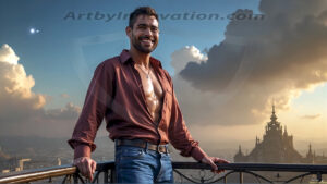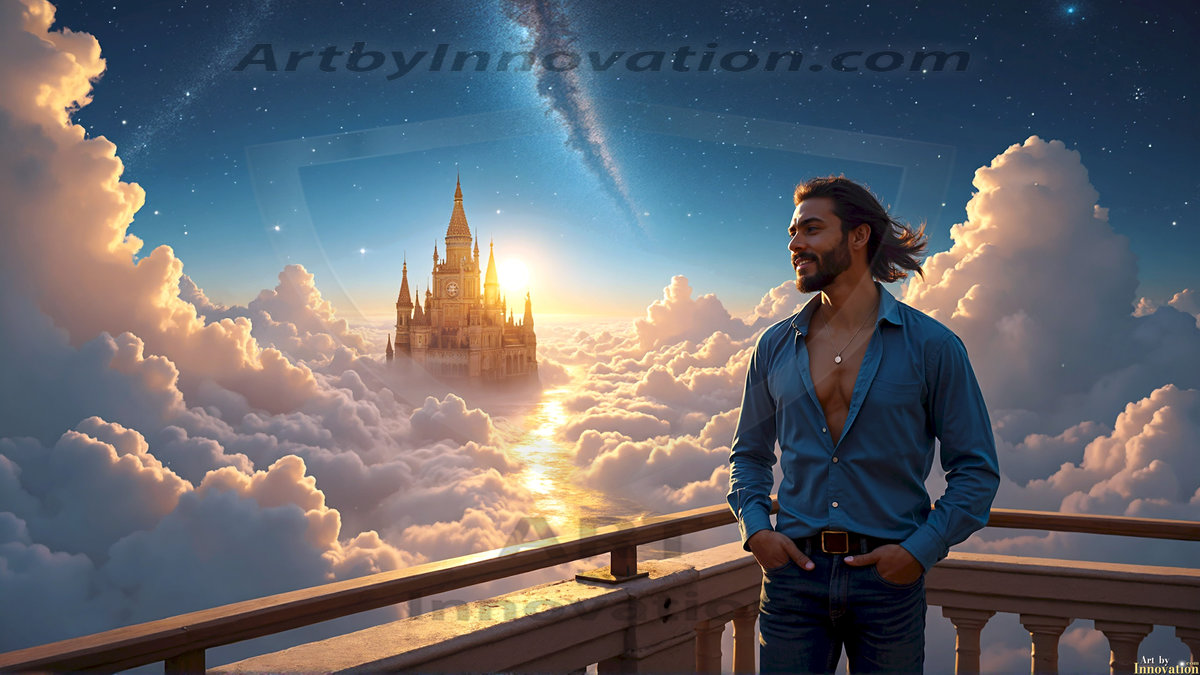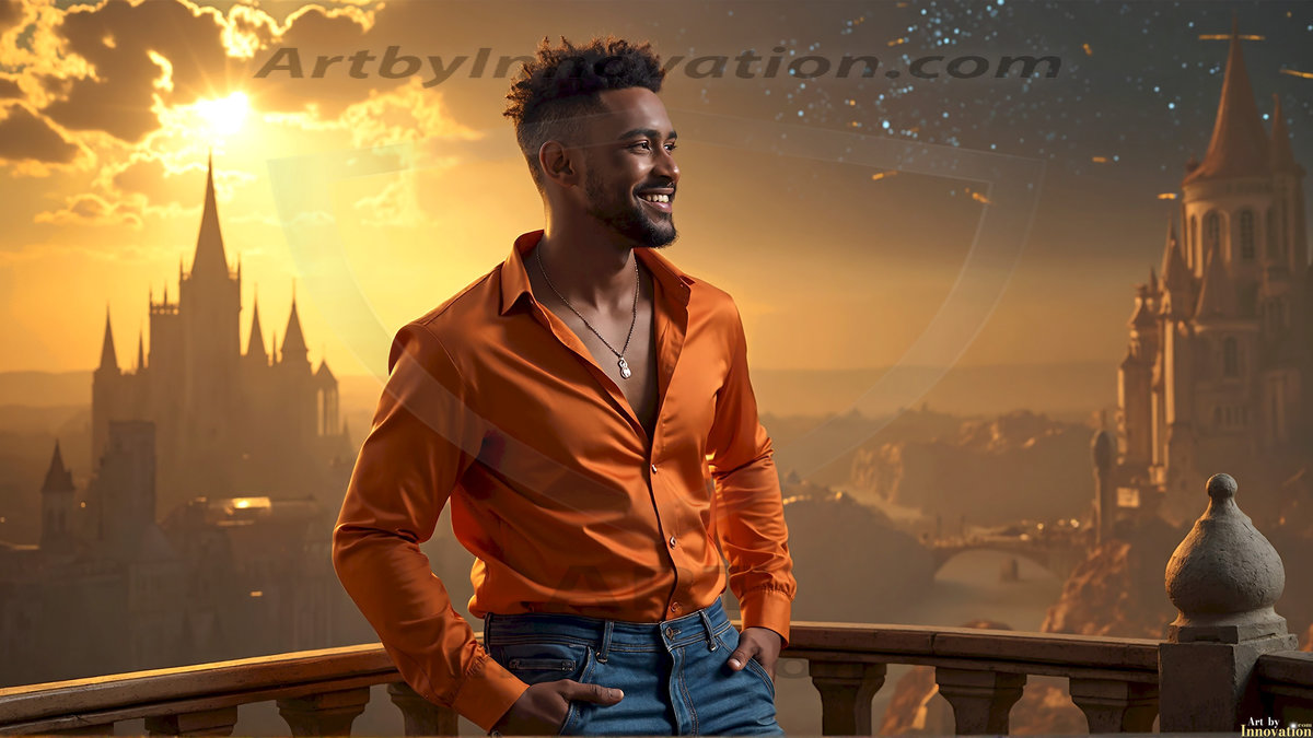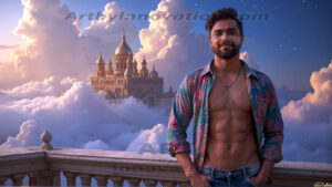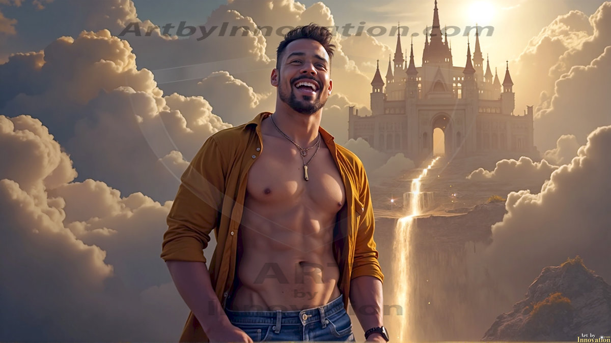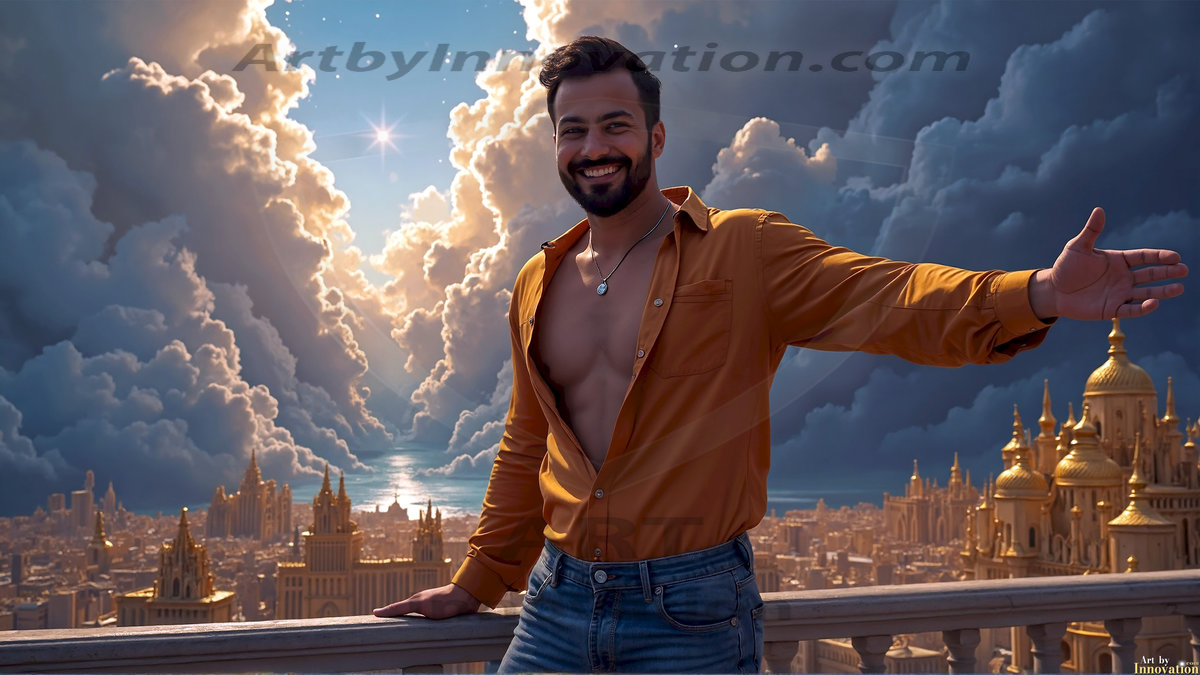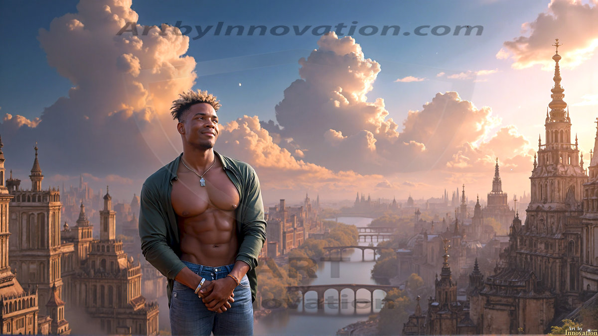 Welcome to the Golden City. This AI-generated collection features beautiful, glamorous, handsome men on balconies overlooking a breathtaking golden city in the heavens — massive majestic gothic architecture, golden rivers flowing to the edge of the galaxy, stars and constellations sparkling in a vast cosmic sky. Each image evokes a sense of reverence, freedom, and divine glory. Available in young men (teens and 20s), mature men, and Daddies editions. Created using Flux.1 and ComfyUI by © Jeff Dupler | Art by Innovation | https://www.artbyinnovation.com