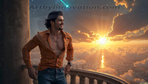 Welcome to the Golden City. This AI-generated collection features beautiful, glamorous, handsome men on balconies overlooking a breathtaking golden city in the heavens — massive majestic gothic architecture, golden rivers flowing to the edge of the galaxy, stars and constellations sparkling in a vast cosmic sky. Each image evokes a sense of reverence, freedom, and divine glory. Available in young men (teens and 20s), mature men, and Daddies editions. Created using Flux.1 and ComfyUI by © Jeff Dupler | Art by Innovation | https://www.artbyinnovation.com