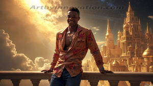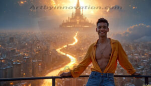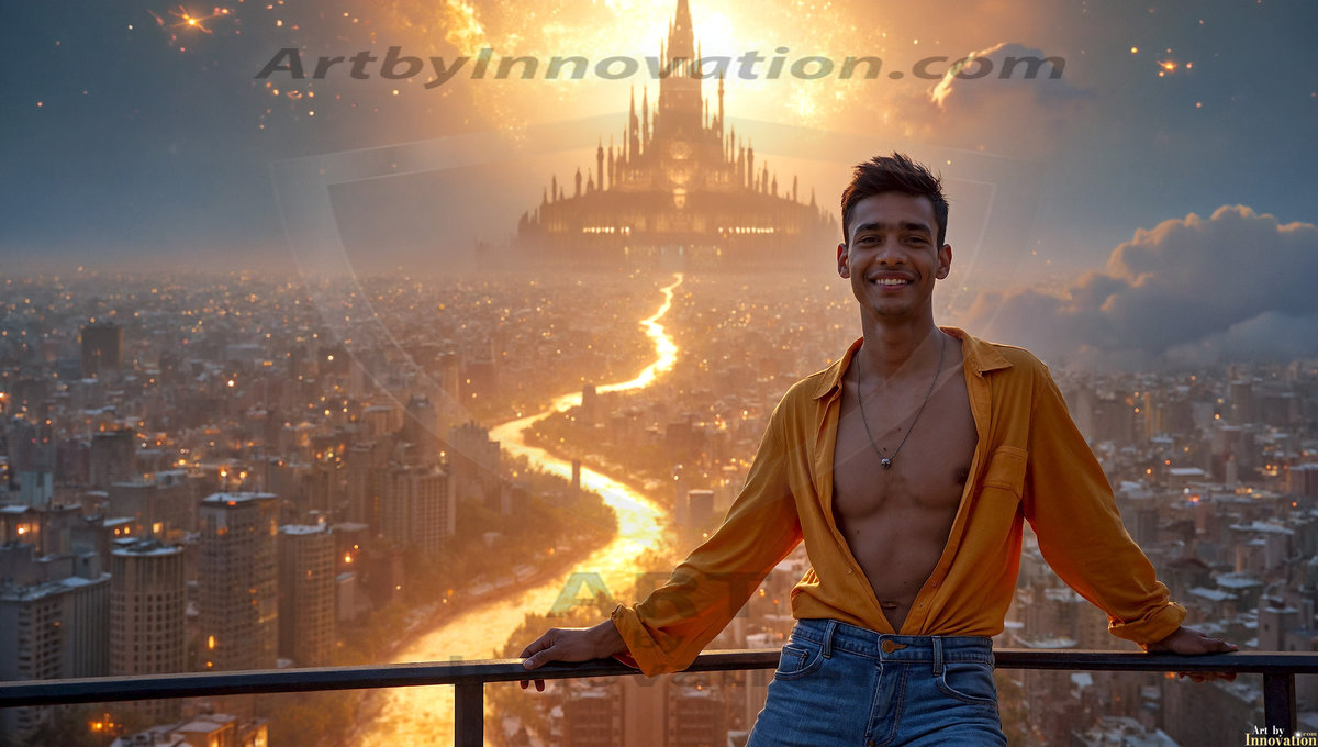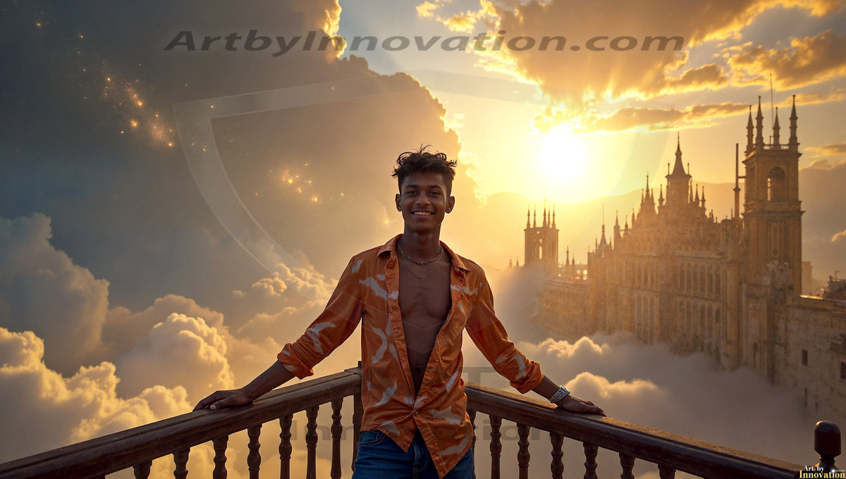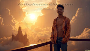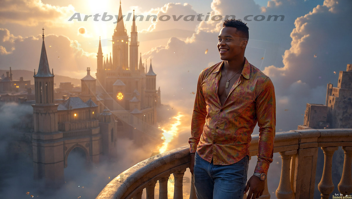 Welcome to the Golden City. This AI-generated collection features beautiful, glamorous, handsome men on balconies overlooking a breathtaking golden city in the heavens — massive majestic gothic architecture, golden rivers flowing to the edge of the galaxy, stars and constellations sparkling in a vast cosmic sky. Each image evokes a sense of reverence, freedom, and divine glory. Available in young men (teens and 20s), mature men, and Daddies editions. Created using Flux.1 and ComfyUI by © Jeff Dupler | Art by Innovation | https://www.artbyinnovation.com