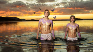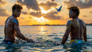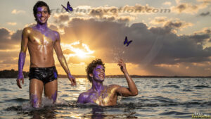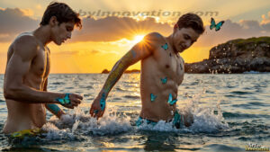 ByjeffAI-generated LGBTQ Pride art — beautiful handsome men embellished with the vibrant rainbow colors of the gay pride flag. 500+ images.