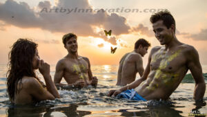 ByjeffAI-generated art of beautiful handsome men bathed in a vibrant rainbow of stunning colors — colorful, surreal, and gorgeous.