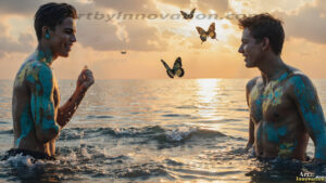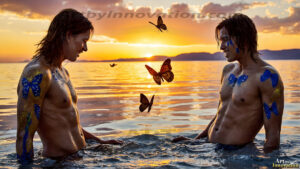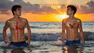 ByjeffAI-generated LGBTQ Pride art — beautiful handsome men embellished with the vibrant rainbow colors of the gay pride flag. 500+ images.