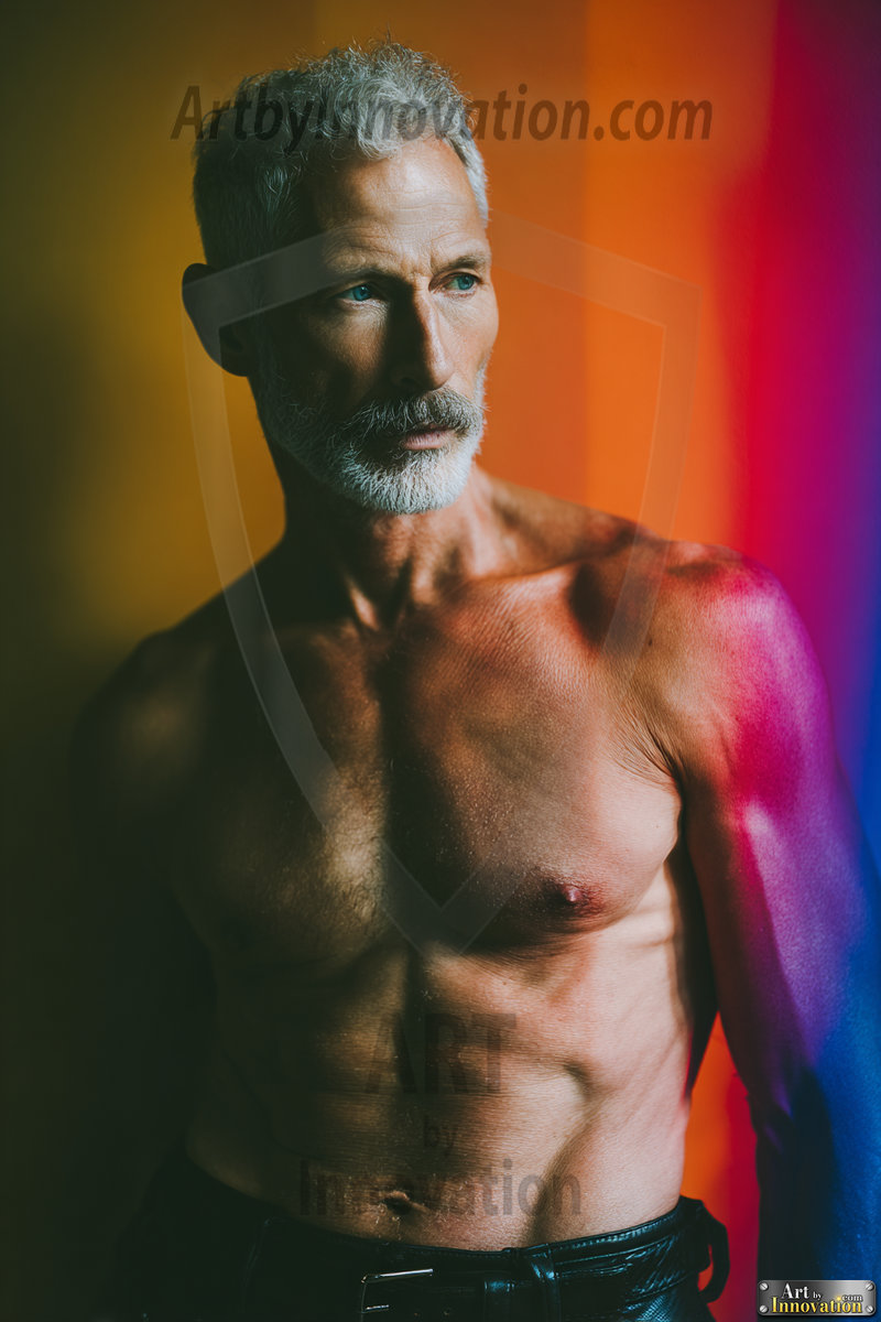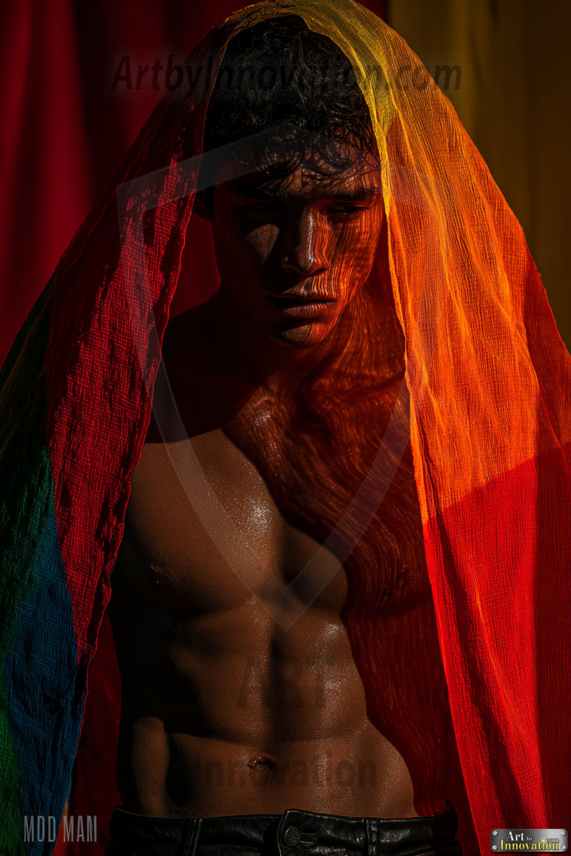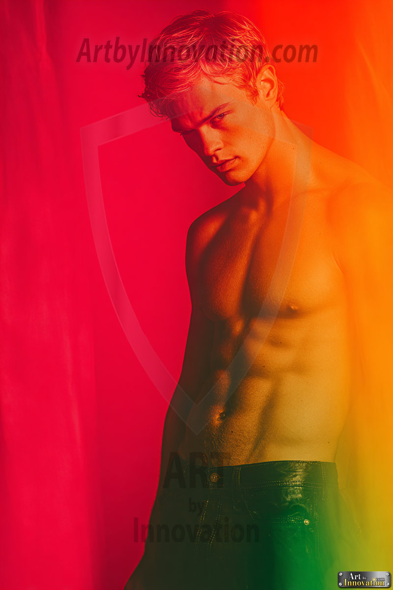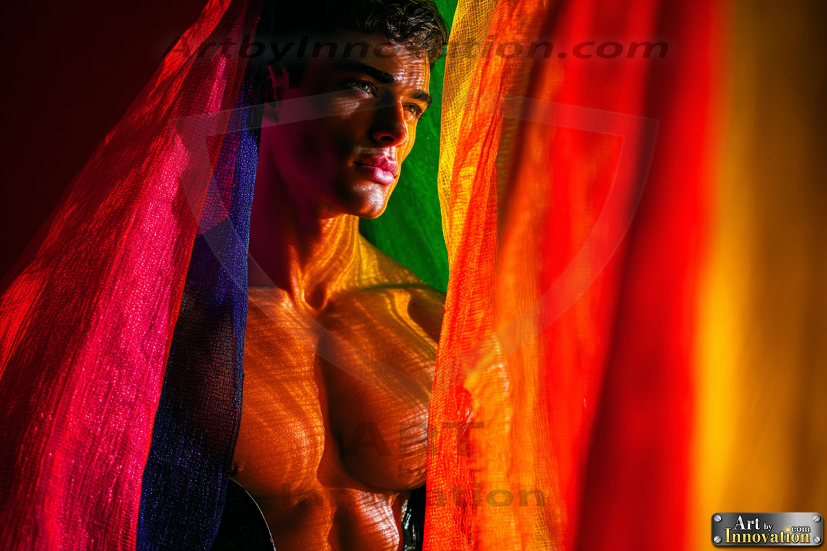 Every color of the rainbow. This AI-generated collection features beautiful, handsome men enveloped in, bathed in, and surrounded by a stunning full spectrum of vibrant colors — from the warm golds and reds to the cool blues and violets of the rainbow palette. Each image is a celebration of color, beauty, and the human form. Created using Flux.1 and ComfyUI by © Jeff Dupler | Art by Innovation | https://www.artbyinnovation.com