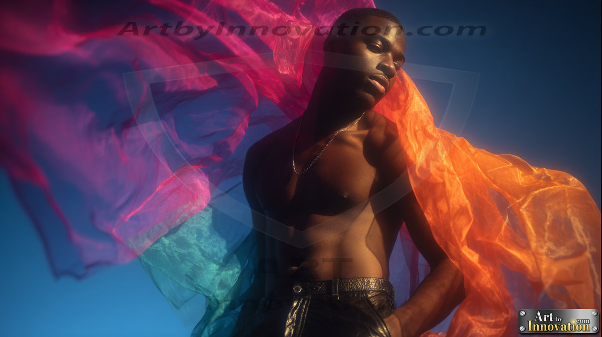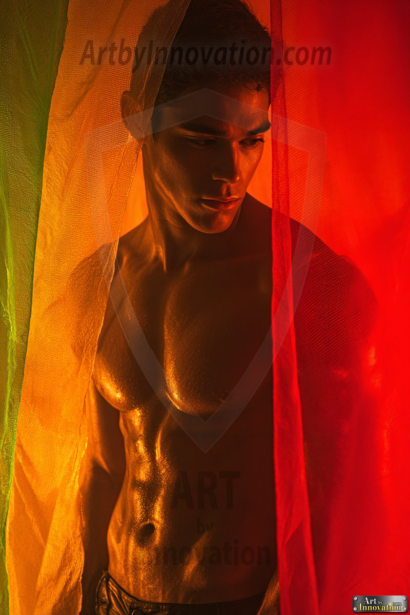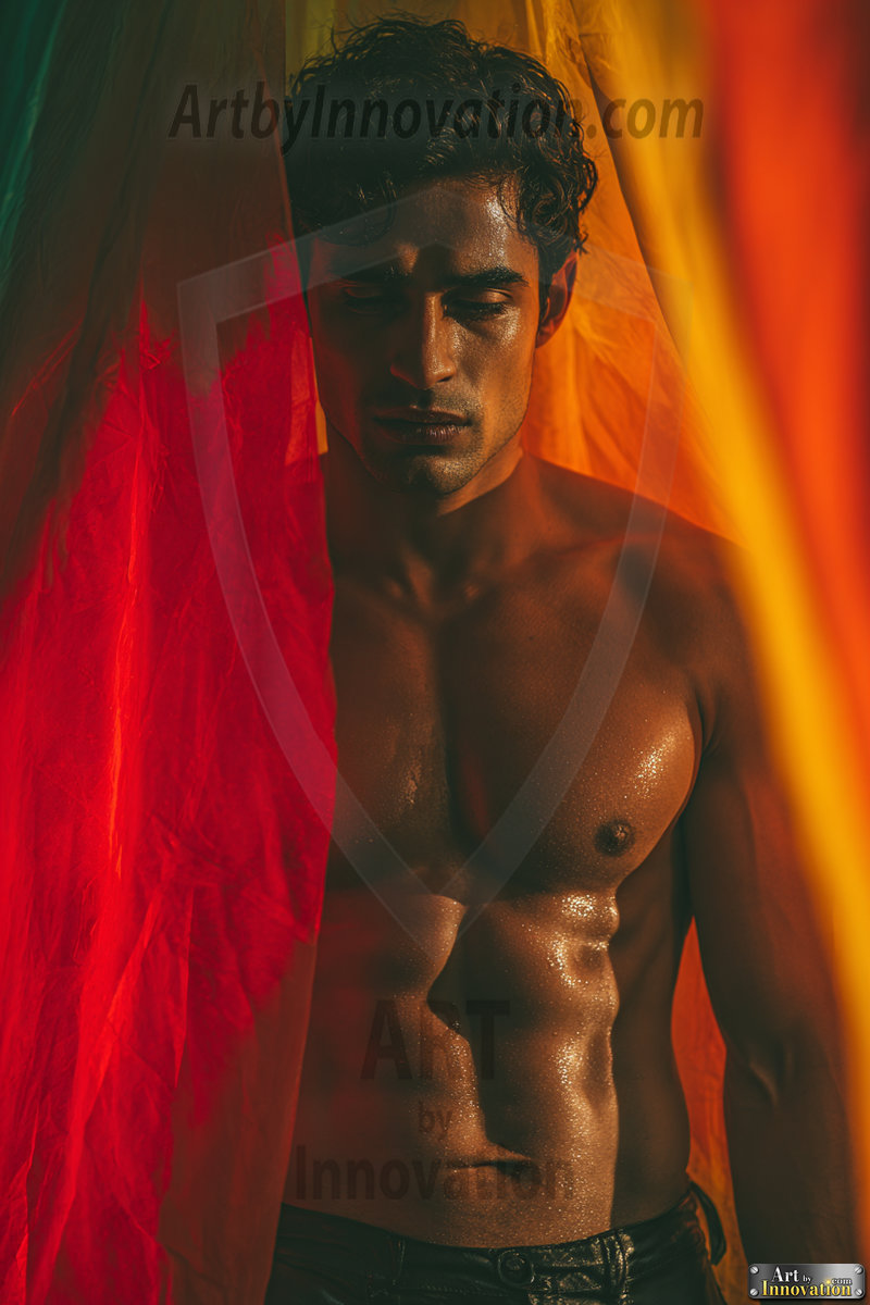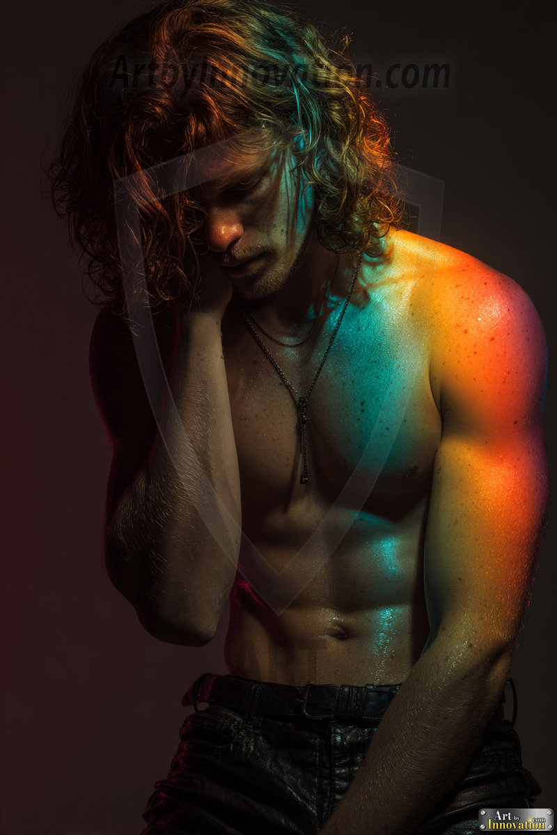 Every color of the rainbow. This AI-generated collection features beautiful, handsome men enveloped in, bathed in, and surrounded by a stunning full spectrum of vibrant colors — from the warm golds and reds to the cool blues and violets of the rainbow palette. Each image is a celebration of color, beauty, and the human form. Created using Flux.1 and ComfyUI by © Jeff Dupler | Art by Innovation | https://www.artbyinnovation.com