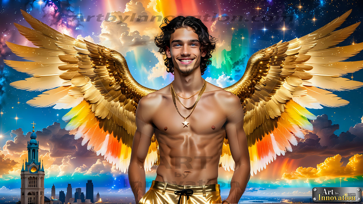 Heaven's Warriors descend. This AI-generated collection features stunningly handsome male angels with enormous, shimmering feathered wings — raw, untamed divine energy radiating from their chiseled forms. Set against heavenly skies, golden celestial cities, and ethereal cloudscapes, each angel exudes both breathtaking beauty and formidable divine power. Created using Flux.1 and ComfyUI by © Jeff Dupler…