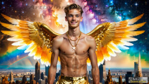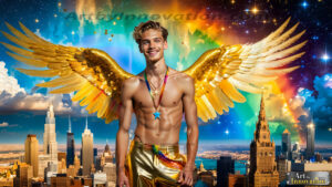Pride takes wing. This AI-generated collection features handsome, beautiful men adorned with magnificent feathered wings colored in the full vibrant spectrum of the LGBTQ+ Pride flag — each wing a breathtaking display of rainbow color, symbolizing freedom, identity, and the soaring spirit of the community. Created using Flux.1 and ComfyUI by © Jeff Dupler |…