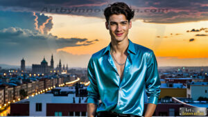 Art imitating life — and life imitating art. This AI-generated abstract concept collection features handsome men breaking the fourth wall of the canvas itself, emerging from classic oil paintings as their faces and forms come alive while their bodies remain painted on the wall. A profound meditation on the connection between creative expression and human…