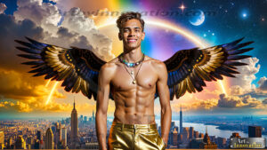 Where beauty meets the divine — in full color. This AI-generated collection features beautiful, handsome male angels with enormous, vibrantly colored shimmering wings that reflect and radiate the full spectrum of color. Raw, untamed divine energy emanates from each figure, drawing viewers in with an electrifying and captivating presence. Created using Flux.1 and ComfyUI by…