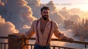 ByjeffThe enhanced Golden City Collection v2 — AI-generated handsome men on heavenly balconies, elevated quality. 255 images.