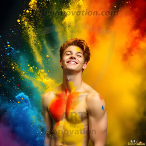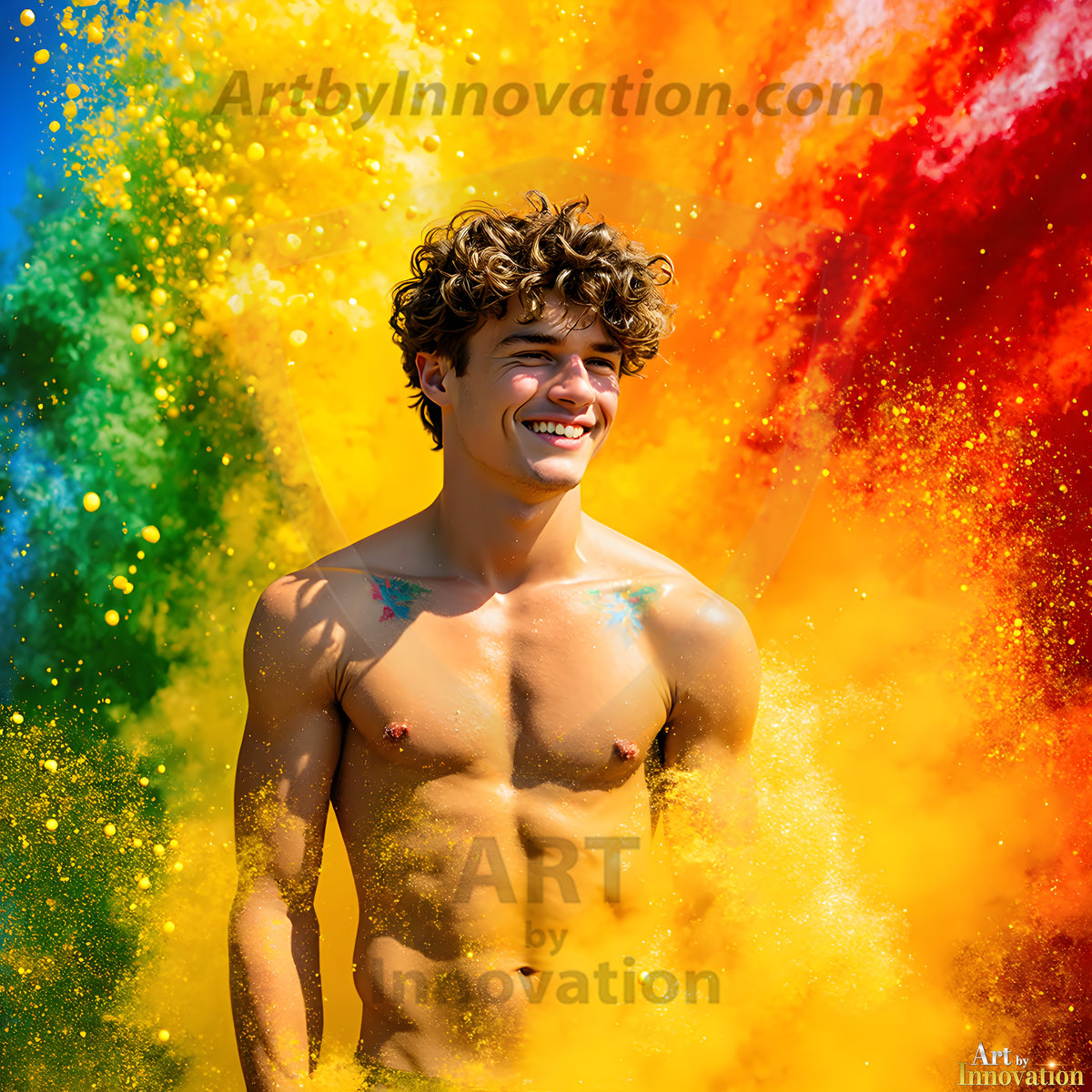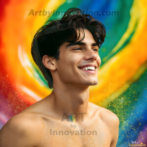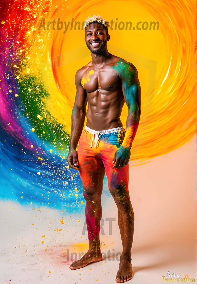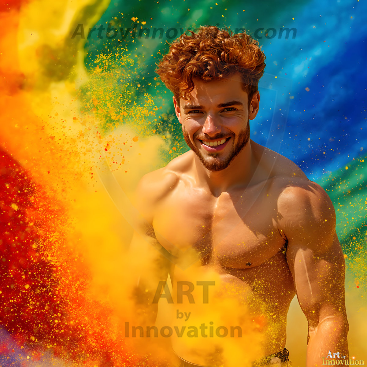 Every color tells a story. This AI-generated collection celebrates the vibrant colors of LGBTQ+ Pride — featuring beautiful, handsome men embellished with the full rainbow palette of the gay pride flag. Red for life, orange for healing, yellow for sunlight, green for nature, blue for serenity, and violet for spirit. Over 500 stunning images celebrating diversity, identity, and community. Created using Flux.1 and ComfyUI by © Jeff Dupler | Art by Innovation | https://www.artbyinnovation.com