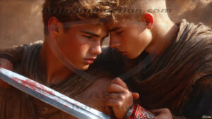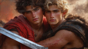AI-generated LGBTQ Pride art — beautiful handsome men embellished with the vibrant rainbow colors of the gay pride flag. 500+ images.