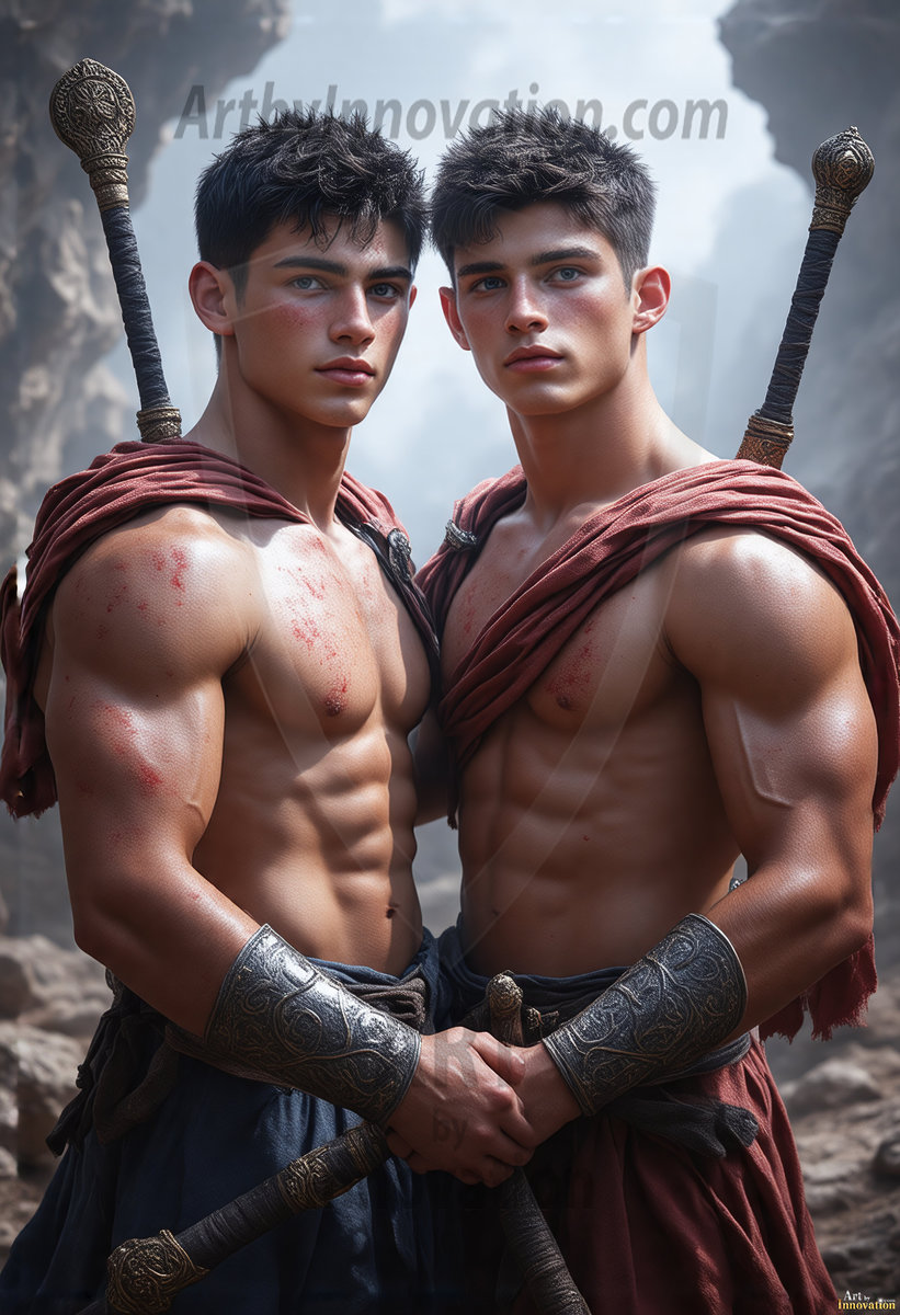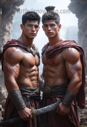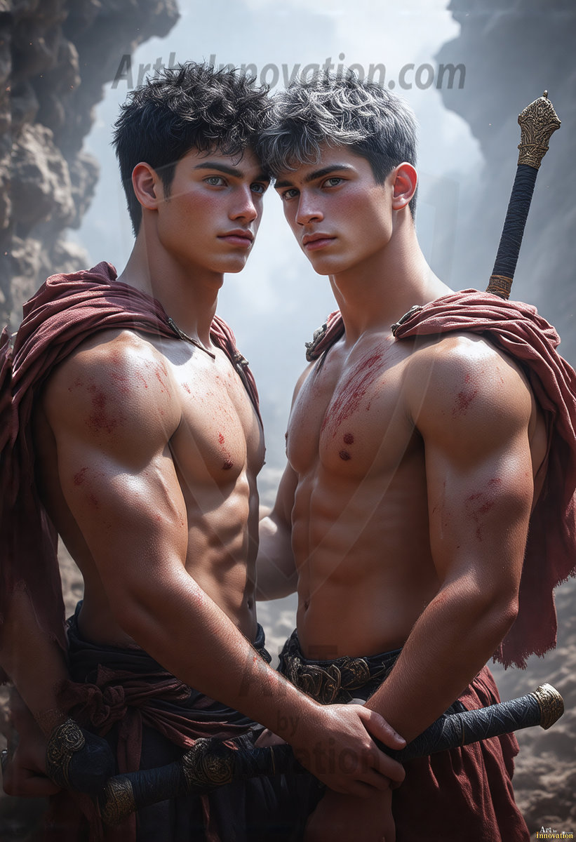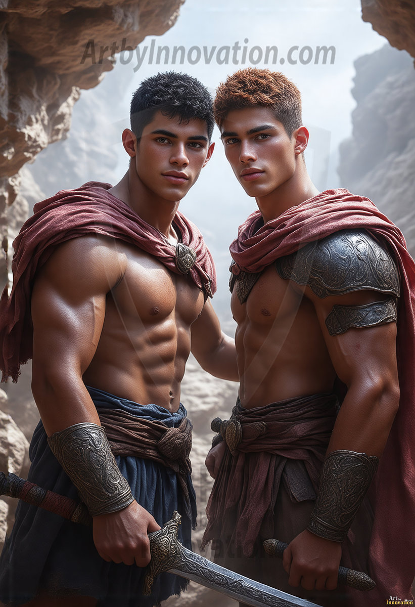 AI-generated LGBTQ Pride art — beautiful handsome men embellished with the vibrant rainbow colors of the gay pride flag. 500+ images.