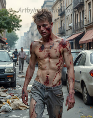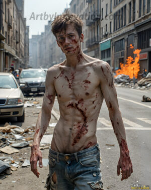 The apocalypse never looked this good. This AI-generated dark fantasy collection features handsome young male zombies in dramatic, cinematic apocalyptic settings — beautiful faces in various states of dark undead transformation, set against haunting desolate ruins and hellscapes. Equal parts beautiful and terrifying. Part of the Dark & Legendary Collection. Created using Flux.1 and ComfyUI by © Jeff Dupler | Art by Innovation | https://www.artbyinnovation.com